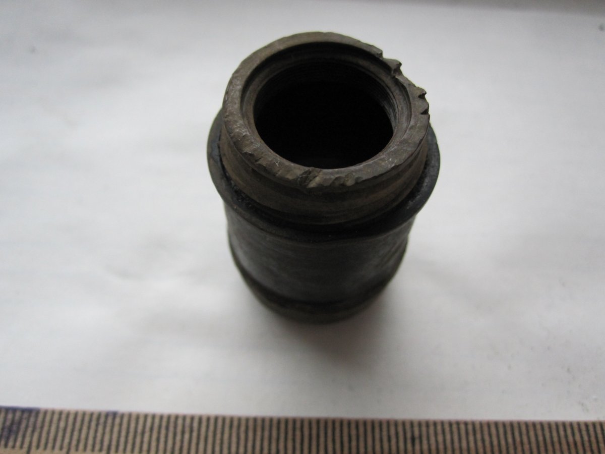 Вот попался такой интересный предмет. Как подсказали знающие люди - Окуляр бинокля 6х30 без регулировочной муфтьі и наглазника. Обратите внимание на зазубрины- такие появляются когда что то откручивают при помощи зубила.