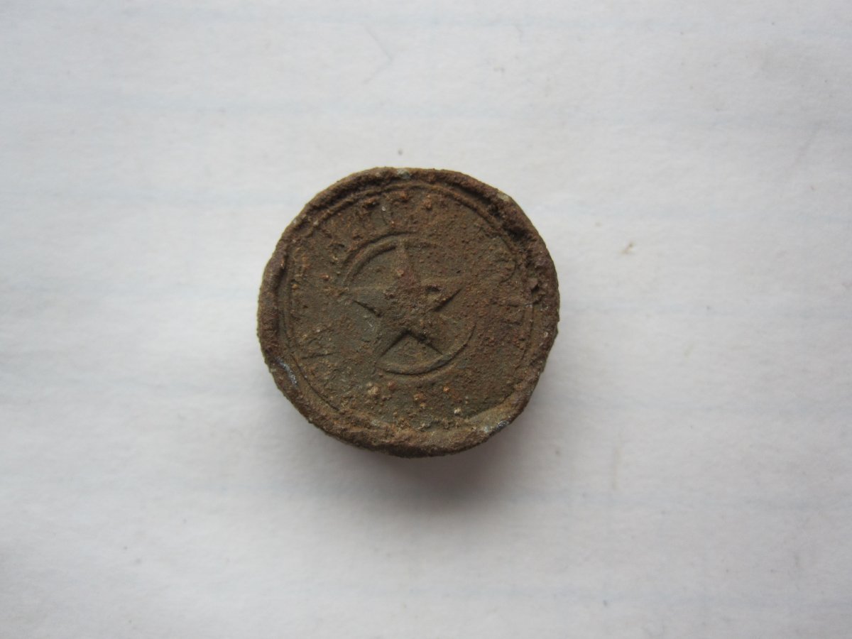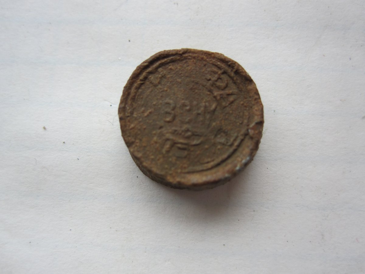 Жаль, буквы на пломбе (по фото) едва заметны ... Но есть маленькая надежда, что после легкой реставрации можно попробовать их прочесть (хотя бы часть из них, возможно удастся угадать слово). И возможно, станет понятен характер груза, который фиксировала пломба.