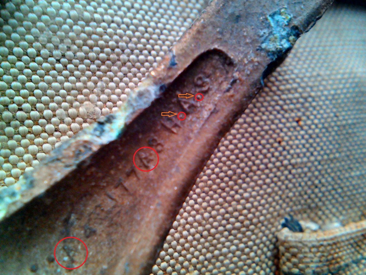 Добрый вечер! Жаль, не очень четко видны детали орла. Но готический шрифт.... Вполне возможно, германская пломба. Сидя в карантинной изоляции, я стараюсь наверстывать реставрацию находок, которые не успел рассмотреть в зимний период. Также добавлю ещё парочку лагерных пломб: Первая времён царизма - на лицевой стороне хорошо читается "...общество б..." и детально проработанный рисунок подковы в центре. На обороте , жаль есть повреждения, но внизу хорошо виден контур креста "мальтийского" типа: Вторая - явно советского периода. Интересно, что могло означать сочетание букв "М.У."? Звёздочка и цифра "3" как-то очень недвусмысленно напоминает о продукции Ульяновского патр. завода . Возможно, пломбой был опечатан деревянный ящик с патронными цинками...