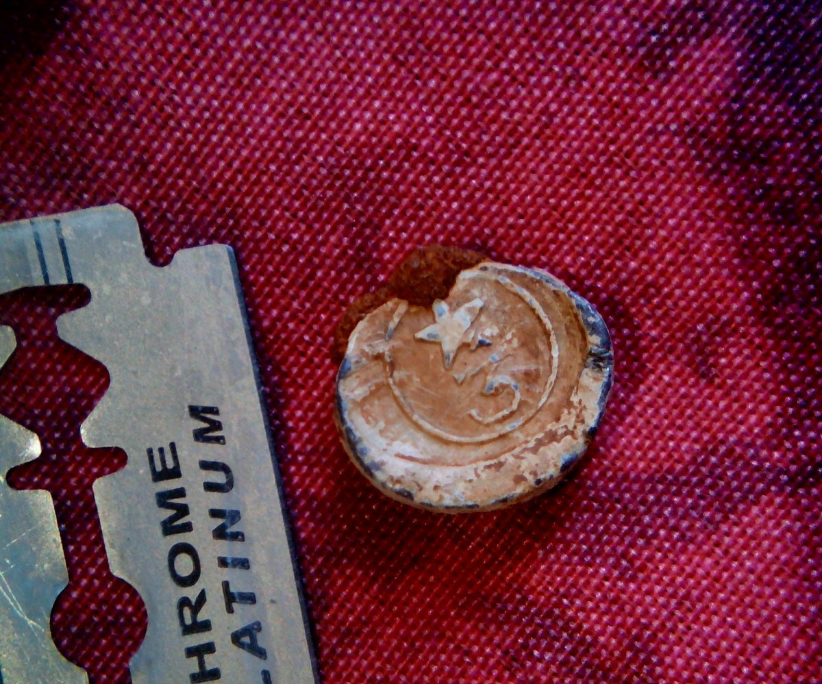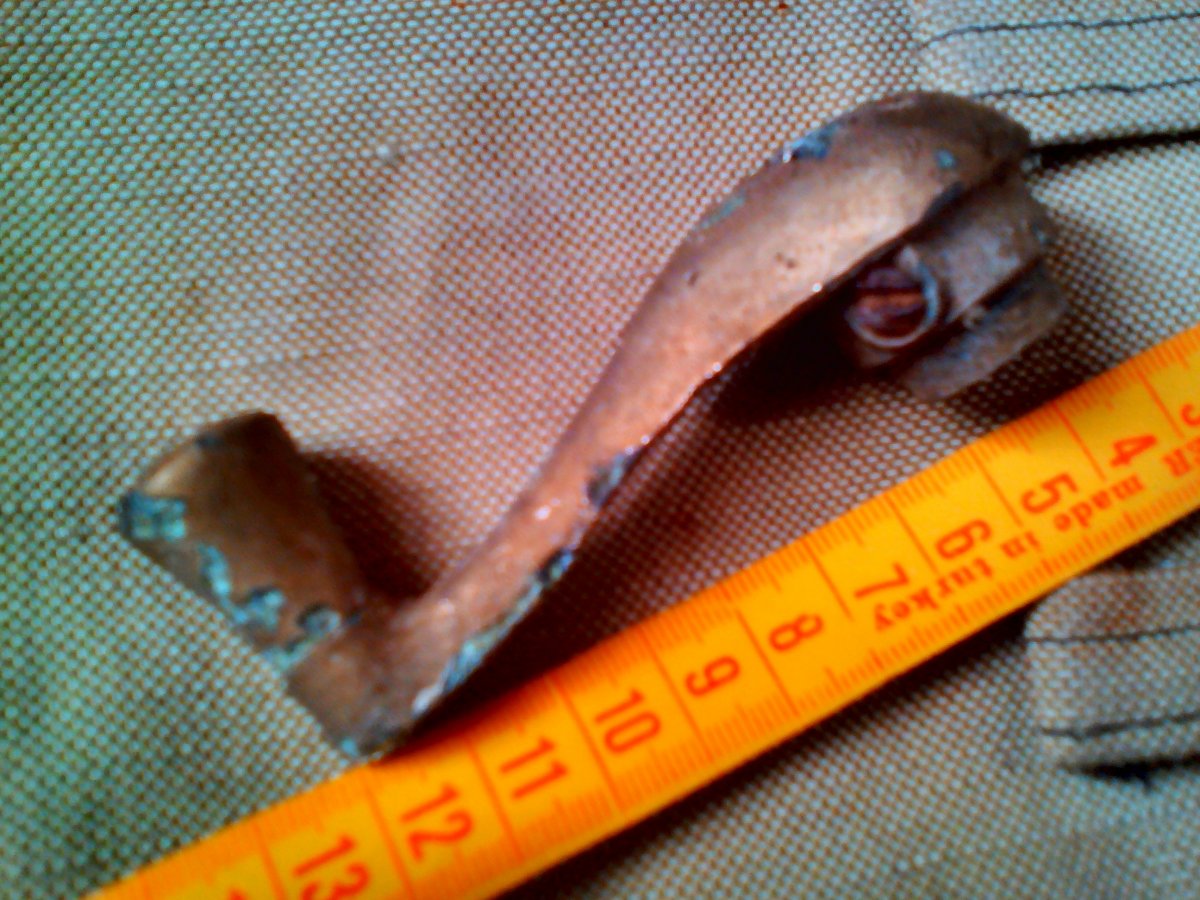 Она даже не отломана, а поддточена ржавчиной: Кроме ножки, железной была и вся обратная часть, бронза - только на лицевой. Больше похоже, что эта штуковина из 30-х годов.