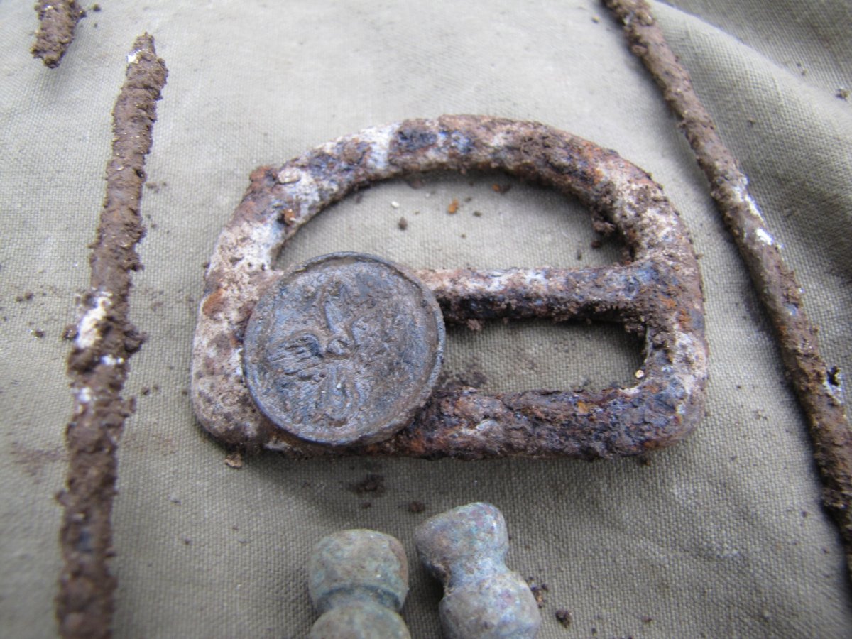 Такие пуговицы выпускались в 1946-91 гг. Латунный верх, да ещё и с покрытием, это скорее всего из самых ранних выпусков этой пуги. Да и сохран железной обратки говорит за это - точно такой же по виду печальный сохран стальной обратки у гильз РККА 30-40 годов, попадающихся в Лагере. Очень похоже, что эта пуговица пролежала там не менее 60-ти лет. Возможно, кто-то из отдыхающих в лесу потерял в начале 50-х (ИМХО)