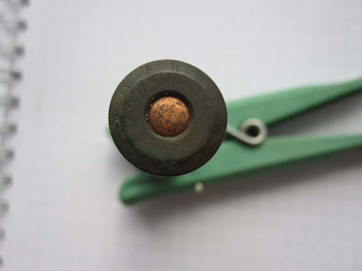 Это итальянский 10,35×47 R (также 10,35 × 47 mm R Vetterli) — итальянский винтовочный патрон. Применялся с винтовкой Vetterli-Vitali Mod. 1870/87 с 1870 года до её замены на Carcano Mod. 91. Даже для старого лагеря РККА такие патроны уже были сильно раритетными. Они пости не встречаются там, вряд ли их массово использовали в лагере во времена РККА. Может, это как раз тот случай, про который мы недавно говорили - это артефакт с дореволюционного периода ??. Этот патрон ближе к "бердановской" эпохе. Повреждения на нём наверное не от штыка, слишком трудно пырнуть такую верткую штуковину штыком , но похоже, его пытались для чего-то вскрыть. Если для извлечения пороха, то наверное действительно было бы проще выломать пулю Если мне не изменяет память, то порох у таких патронов очень смецифический - плоские цилиндрики со сквозными отверстиями в центре. За все времена мне попалась только один раз гильза от такого патрона, с таким же точно клеймом SMI (Societa Metallurgica Italiana), только год был другой - 1917. Но попалась даже не на территории лагеря, а северо-западнее он него, по направлению к Студенку. И эта гильза была немного поддута при выстреле, как при нештатном отстреле: