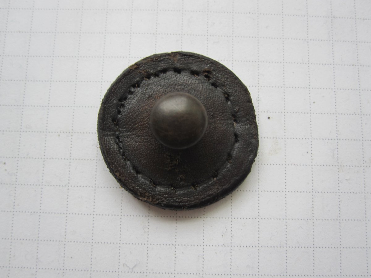 мне вот попался такой девайс. шпенек на круглой коже , которая была пришита или где то вшита. шпенек латунный с покрытием. кожа сохранилась отлично , ну может будет сохнуть и задубеет.