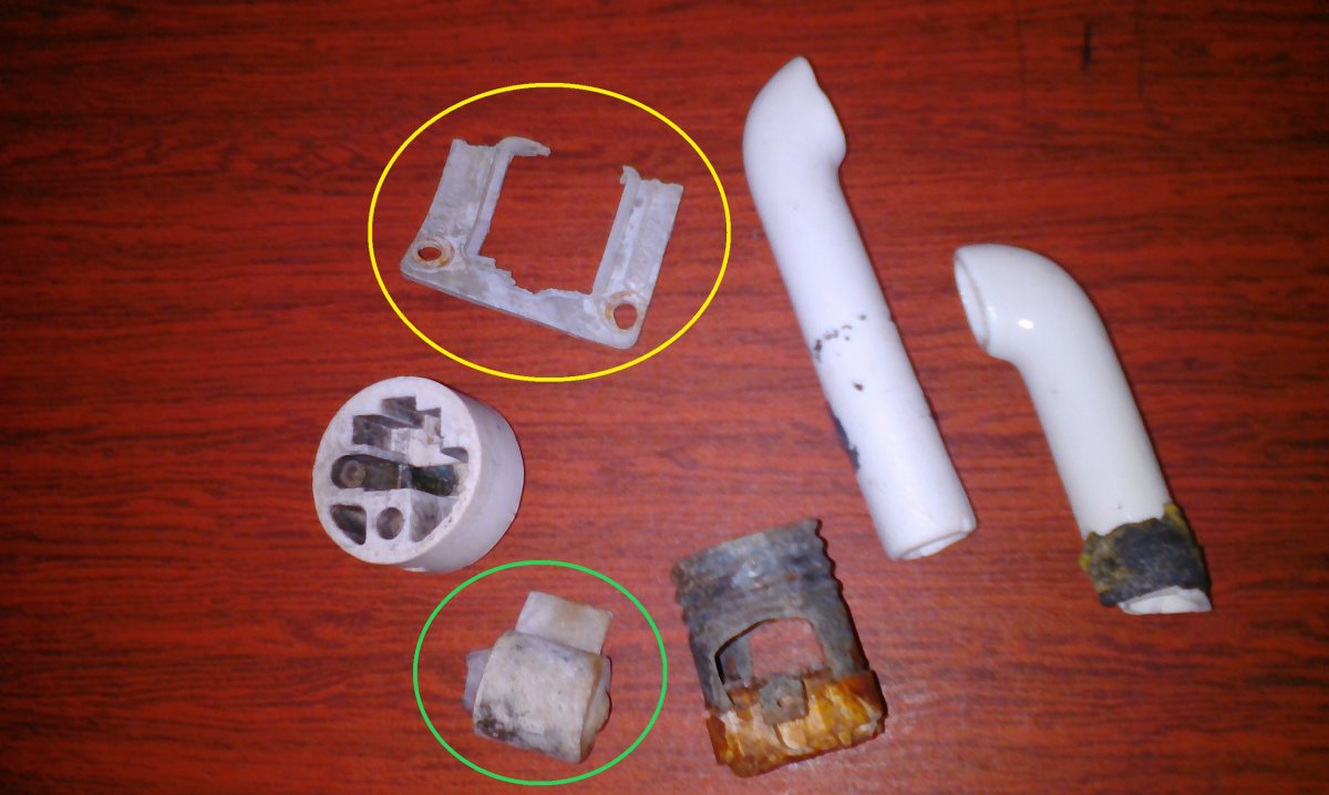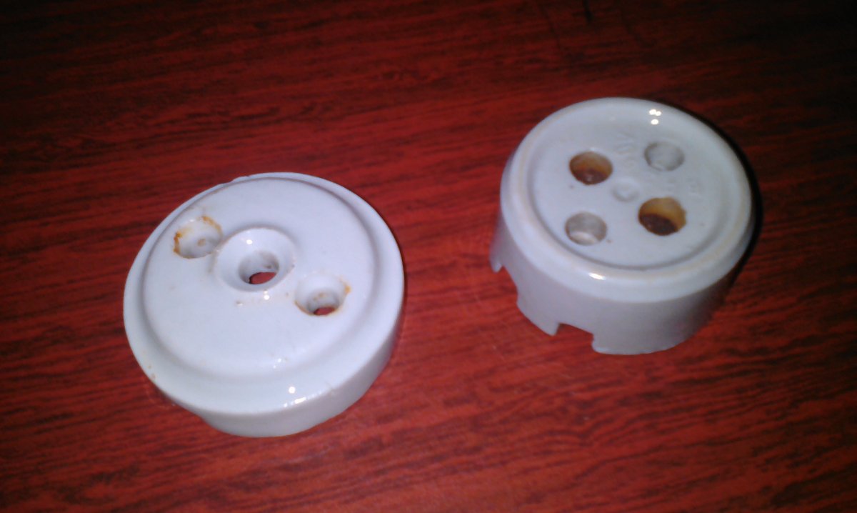 Может вторая запчасть - это часть фарфоровой вилки ? У меня дома кое где висят еще фарфоровые патроны,работают уже лет 40 точно,а сколько до этого работали не знаю Они по моему вечные при правильной эксплуатации.
