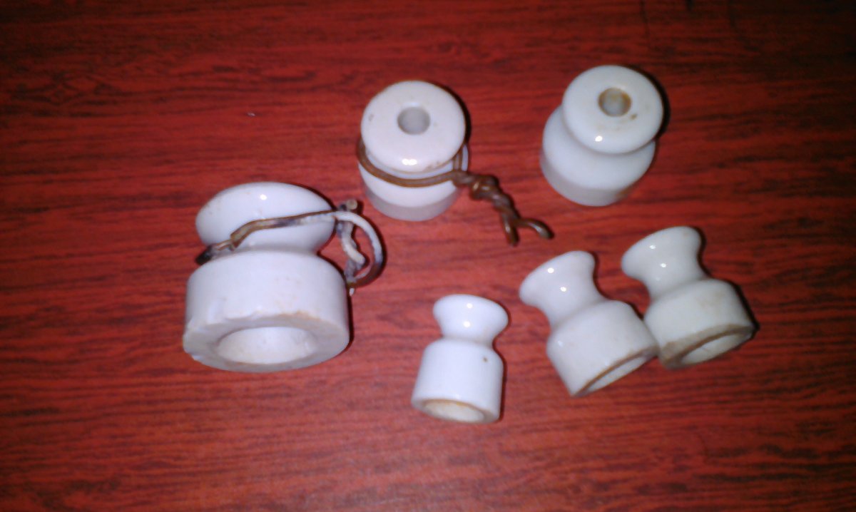 Доброго времени суток! Вот подборка некоторых (далеко не всех) электротехнических находок с военлагеря. Фото 1 и 2 - два вида самой удачной из них, практически в рабочем состоянии декоративный настенный фарфоровый патрон. Все разъёмные детали из латуни, винтики крутятся! Можно вворачивать лампу - и пользоваться Фото 3 и 4 - фарфоровая розетка и рядом с ней что-то ещё электротехническое (не знаю что). С розеткой повезло меньше, она явно не рабочая, всё проржавело в монолит. Фото 5 - разнокалиберные изоляторы для наружной проводки. Некоторые с оставшейся на них оригинальной проволокой.