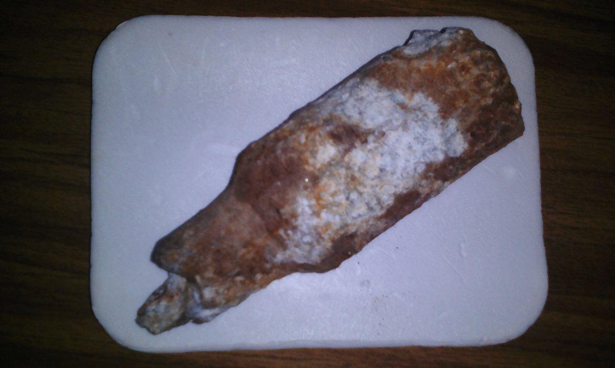 И совсем уже грустная находка в смысле сохранности, рожок от ППШ. Нашёл их тогда сразу два, но второй вообще развалился у меня в руках от ржавчины. Как-то у нас была здесь дискуссия, чем отличаются рожки ППШ от рожков ППД и ППС: Как раз в подтверждение того разговора - останки рожка с "усилителем". Только усилитель оказался смещенный к середине. Вероятно из-за этой поломки рожок и был выброшен когда-то: