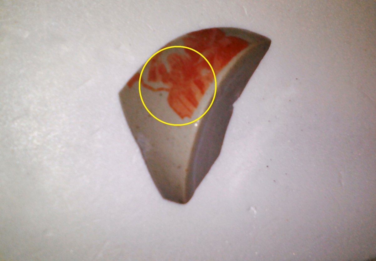 Ещё к теме о посуде. Есть предположение (хоть и маловероятное), что на чашке с вонлагеря, осколок которой мне попадался, был нарисован вот этот давно знакомый красноармеец. Очень похожая деталь на обоих рисунках: