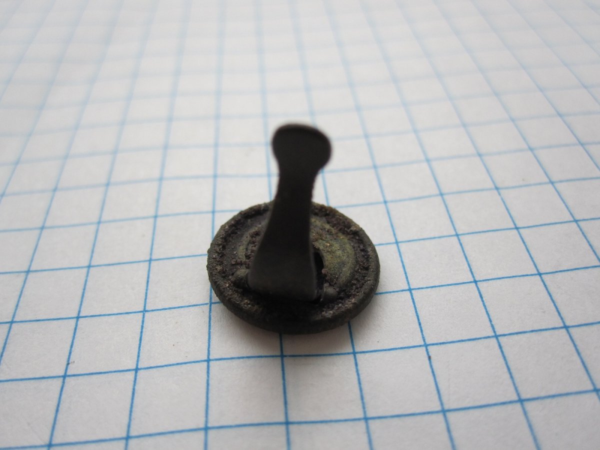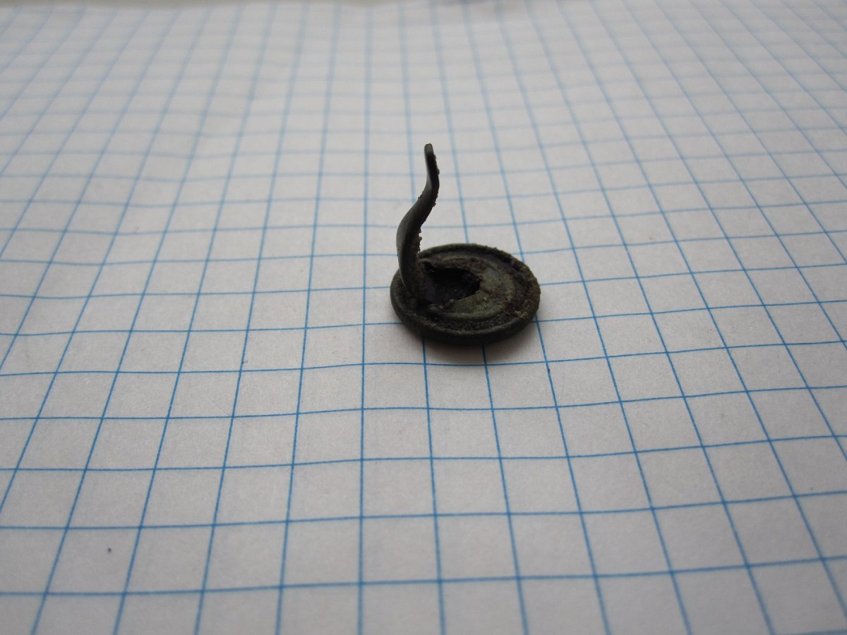 Похоже на части какой-то фурнитуры, что-то вроде кнопок-заклёпок. Никогда таких не находил. Очень возможно, что импортного происхождения. Возможно, что от заклёпки обуви - округлой плоской частью вовнутрь, а за "усик" проходили шнурки, так проще шнуроваться, не нужно попадать в дырочки. Тогда - это тем более импорт.