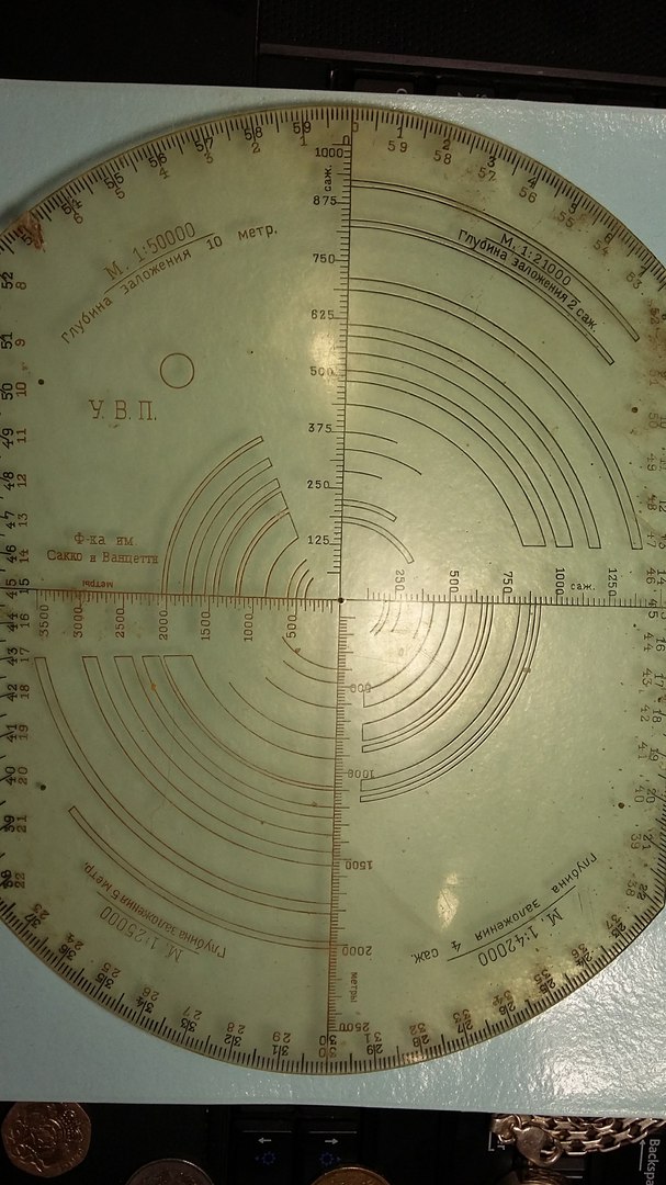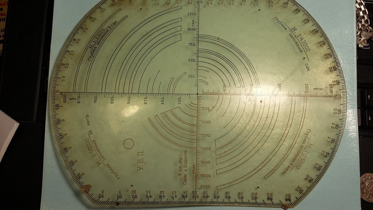Может быть, конечно. Если бы кто-нибудь из спецов-артиллеристов взглянул на эту находку, может тогда точнее прояснилось. Смущают вот эти надписи: "Глубина заложения 10 м", "Глубина заложения 4 сажени" - связаны ли эти термины с артиллерией?. Пересмотрел в интернете много разновидностей артиллерийских кругов, но с надписями "глубина заложения" - не попадались.