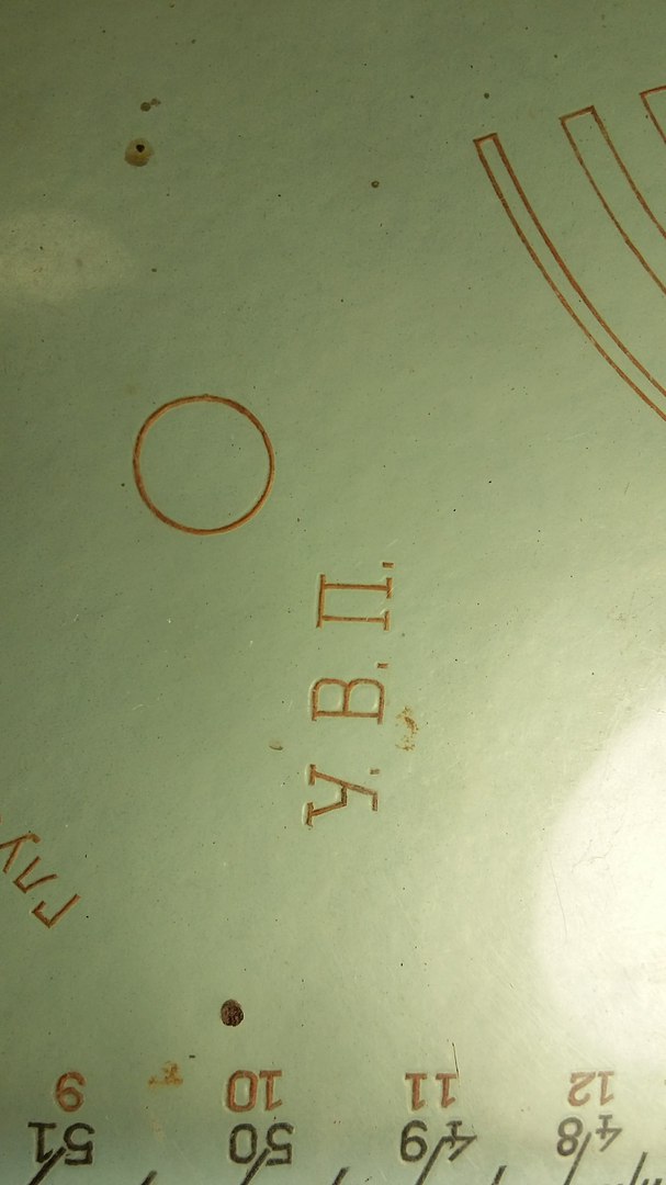 там же писали, что это линейка для нанесения обозначений на картах для артеллеристов, и что позднее такие линейки "...стали делать не круглыми, а обрезанными". Но Ваша линейка намного сложнее в обозначениях на ней, и не прозрачная. Тут были мнения о применении таких линеек в геологии или для подготовки диверсантов.