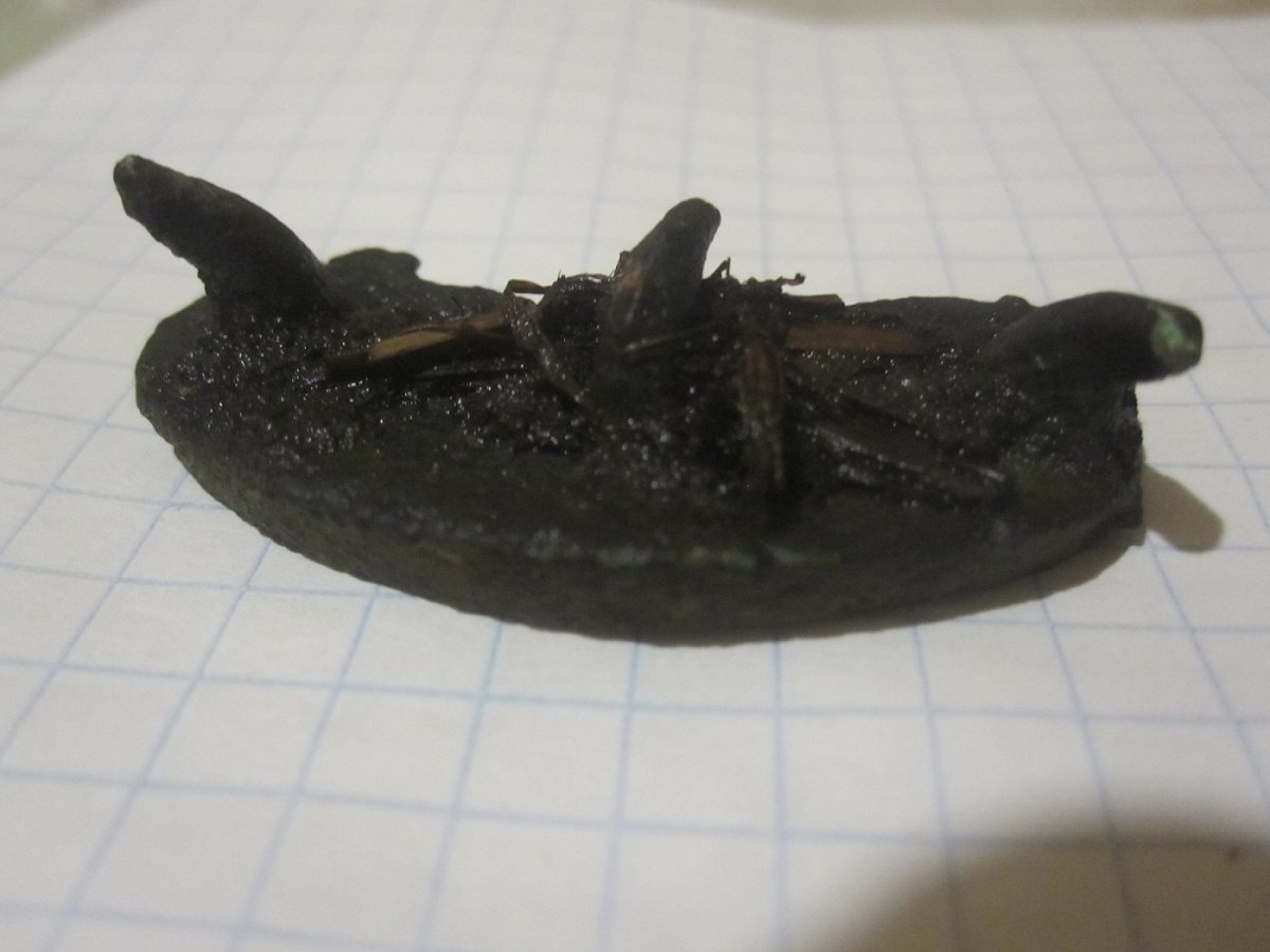 Когда-то я писал, что находил немецкую гильзу от ракетницы, набитую канифолью и небольшой брусок припоя (скорее всего, что-то из серии ПОС, т.к. чистое олово легко гнётся и характерно потрескивает при этом). Ну, вот теперь можно считать, что найдено третье, недостающее звено :) - медный малогабаритный паяльник, рядом гильза Мосина для сравнения. Скорее всего он самодельный, медная головка была насажена на мощный (когда-то) толстый гвоздь. На последнем фото - тот самый брусок припоя: