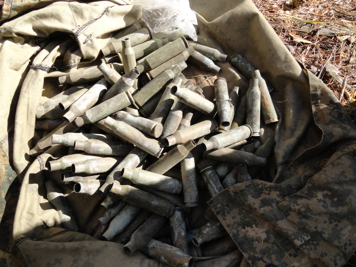 Монеты подкладывал-искал угол для съемки. А по гильзам, может с КПВТ пуляли? После войны, тренировались, а партоны какие были,такими и стреляли.