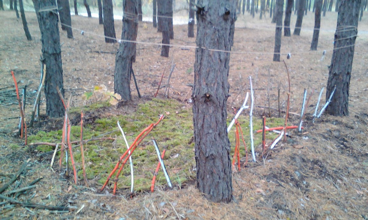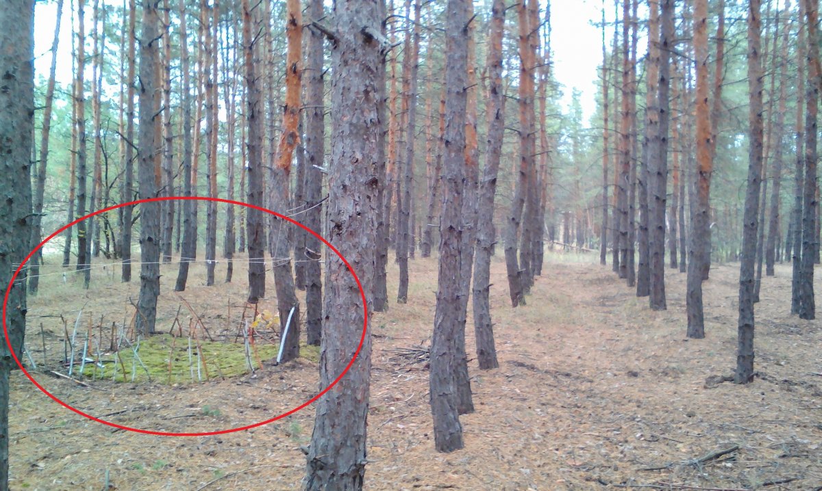 В качестве лирического отступления. В последние свои поездки в военлагерь поздней осенью этого года, обратил внимание на следы присутствия там людей не только суровой копарьской закалки, но и на творчество странствующих философов, а возможно и каких-то практикующих мистиков. Во всяком случае, эти следы оставлены людьми с неординарным внутренним миром. На фото 1 - тут ещё более-менее всё понятно, потянуло кого-то на философию. А вот на фото 2 и 3 - не знаю, что и сказать - отдельный участок грунта, где-то 2 х 2 метра полностью выстлан красивым пушистым мхом (явно притащенным туда издалека, т.к. в сосняке мох не растёт ). Участок зачем-то огорожен деревянной крашенной (!!!) изгородью, над которой натянуты шнуры с привязанными записками непонятного содержания . И ведь сезон отдыхающей в лагерях детворы давно закончился, но кому-то понадобилось такое "украшение" леса.