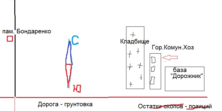 Добрый вечер! Южная окраина лагеря, как я себе представлял все эти годы, проходила примерно по линии нынешней грунтовой дороги, которая идёт от базы "Дорожник" и кладбища (возле кладбища она из асфальтовой переходит в грунтовку) и далее идёт на запад? Я нарисовал эту дорогу "красным" ниже на схеме (для просмотра "кликнуть" на изображении): Попадались ли какие-либо остатки строений лагеря южнее этой грунтовки? Хотя, метрах в 50-ти южнее "Дорожника" и кладбища хорошо видна сеть окопов - это была вторая линия советской обороны по 1942 (и по 1943 ?? году). Скорее всего, эти окопы были уже за пределами строений лагеря, т.е. южнее лагеря. Так что южная граница лагеря примерно с этой нынешней грунтовкой и совпадала . А что касается находки целой серии инструмента и приспособлений, то наверняка это находки по временам боёв и советского отступления в 1942 г. Именно "боевые" находки - потому что они скорее всего были не забыты, и они не были выброшены как ненужные (в условиях войны любой инструмент всегда на "вес золота" и никогда просто так не выбрасывается). Похоже на то, что необходимость спешно отступать застала эту рембазу врасплох, собирать ключи и отвертки было просто некогда, и пришлось всё бросать при отходе.
