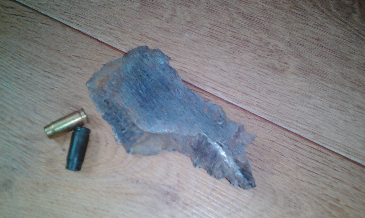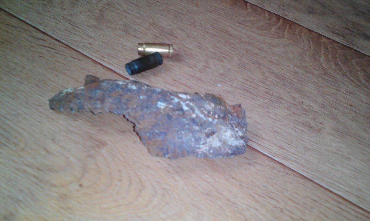 Всем добрый вечер! Если смотреть старые довоенные топографические карты этого места, видно, что южнее лагеря была большая открытая пустошь, на несколько сотен метров на юг, и местность там идёт с постоянным плавным понижением к югу - получается идеальное место для создания линии обороны южного сектора. И те линии окопов, что идут южнее "Дорожника" - это скорее всего часть той линии. Вполне возможно, что какая-то часть строений лагеря с южной стороны тоже были задействованы при создании опорного пункта обороны. Запомнился ещё с пионерского детства такой факт - где-то рядом с нынешним кладбищем, буквально в 5-10 метрах от этой "южной" грунтовки была небольшая яма, в которой мы постоянно откапывали мосинские биметаллические гильзы (на тот момент они были ещё не очень сильно сгнившие от ржавчины - ведь тогда всего 35 лет прошло с времён боёв), там был очень кучный их настрел, с характерным для "Дегтярёва" глубоким "сферическим" наколом капсюля. Мы там, помню, копали несколько дней, а гильзы пёрли и пёрли - многие сотни штук, "залежи". Запомнилось и клеймо на них - все одинаковые, 17 / 42. Скорее всего, один пулемёт работал. И где-то в том же районе была откопана (правда, не нами) коляска от мотоцикла, сильно ржавая, уже без следов краски, но с прикрепленной спереди трубчатой вставкой для установки турели пулемёта. Она лежала возле той грунтовой дороги несколько лет, на металлолом её забрали похоже, уже в начале 90-х. Не берусь сейчас утверждать, чья это была коляска, немецкая (от БМВ или Цундапп) или наша от М-72. Эти места остаются богатыми на такие "сюрпризы". В конце сентября 2012 г. я наткнулся на свежую глубокую конусную воронку, где-то метра 4-5 диаметром, и метра 3 глубиной (она видна и сейчас, но уже заметно осыпалась и обросла мелкой порослью). Это буквально в 80-100 метрах примерно на северо-восток от памятника Бондаренко. Похоже, что МЧС-ники подорвали какую-то подобную штуковину на месте, не стали рисковать выкапывать. Воронка была очень свежей, чётким конусом уходила вниз, песчаные края ещё даже не успело прибить каплями дождя, которые по осени идут часто. И что интересно, буквально в 2-х метрах от воронки, под сосной лежал свежайший осколок, его почему-то не забросило взрывом, лежал рядом. С одной стороны он был глубоко проржавевшим, как и положено старому ВОПу, а внутренняя поверхность - новый почерневший от взрыва металл, края острые - как бритвы, блестящие. Судя по всему, что-то не слабое бахнуло, толщина стенки бомбы, судя по осколку, более 20 мм. Вот он на фото, вид изнутри и снаружи, а гильзы положил рядом для сравнения размеров: