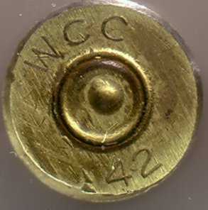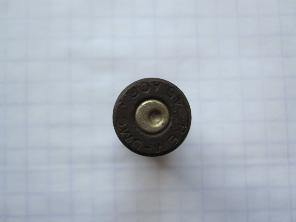 В тех местах встречались и с точно таким клеймом, но эти уже явно по войне. Могли в войну поставляться в СССР также и ранние запасы патронов 45 калибра., со складов, довоенные. А насчет Вашего замечания об изношенном "Томми-Гане" - так ничего удивительного - там в 1943-45 гг стояли запасные полки, где могло быть масса "подношенного" оружия для учебной стрельбы новобранцев.