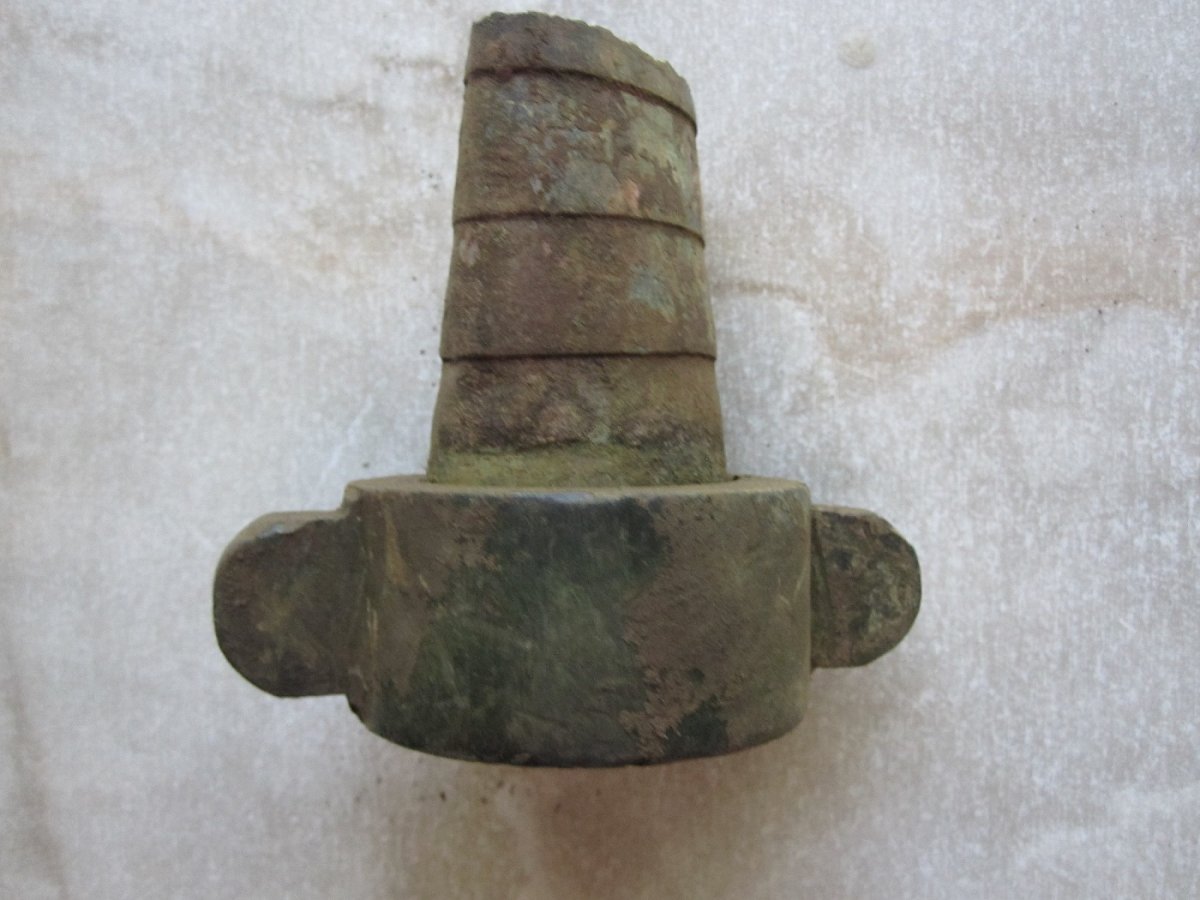 вот такая гайка с пожарного рукава -материал бронза. соединение резьбовое. на глазок 2 дюйма.