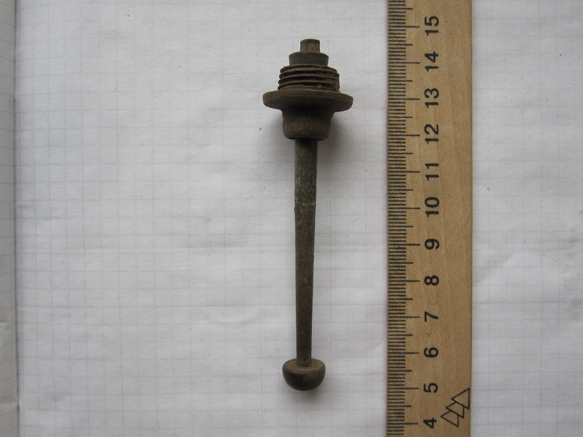 всем привет. очередной шток от рукомойника. учитывая что находится большое кол-во разномастных штоков- предполагаю что рукомойники использовались и после проведения водопровода и канализации в 30-х годах. из-за большого притока людей не всех допускали пользоваться благами цивилизации. допустим приехал какой нибудь коллектив сдавать нормативы или подразделение на учения - провели построение на центральной площади и отправили их жить в палатках или блинах на окраину. выдав при этом раздельный санузел отрытого типа. воду подвозили на телегах в бочках.(запчастей с телег и бочковых кранов раньше тоже попадалось в кол-ве)