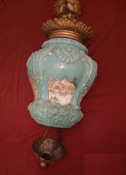 Если электросветильник,то нет проводов. Если свеча или керосин,то почему нет следов копоти или парафина?