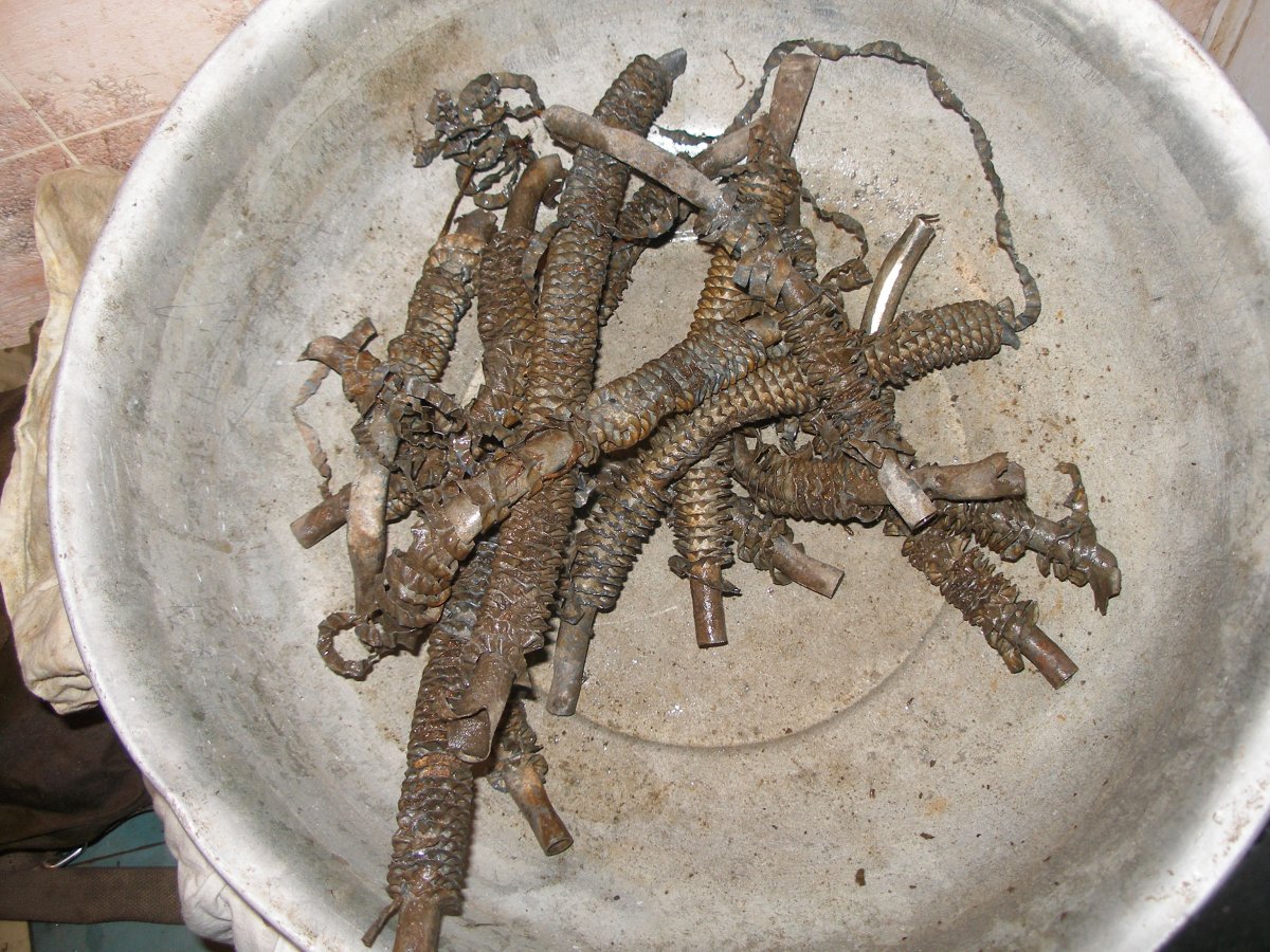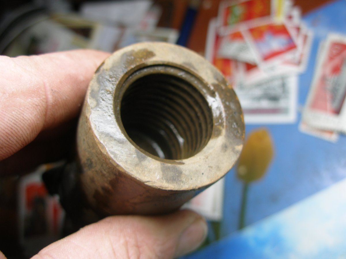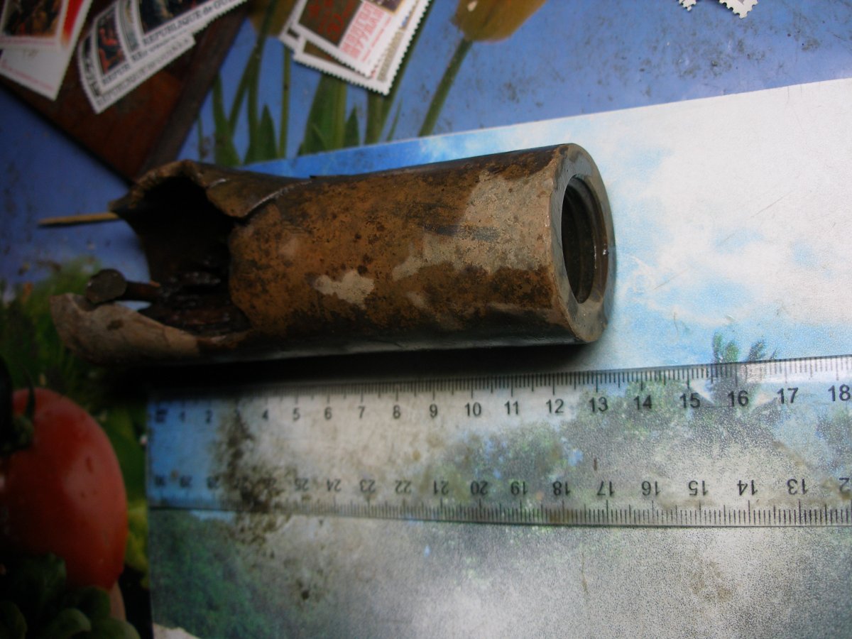 здравствуйте.сегодня вот попалась такая.внутри остатки дерева и латунный гвоздь..подскажите что оно такое