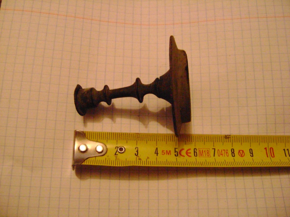 Приветствую уважаемые. Выкопал вчера,непонятную для меня штучку. Какая то ножка,стойка,ручка? Что это такое,может быть.Думал,может миниатюрный подсвечник,под маленькую свечку.Может кто,что подскажет.С уважением.