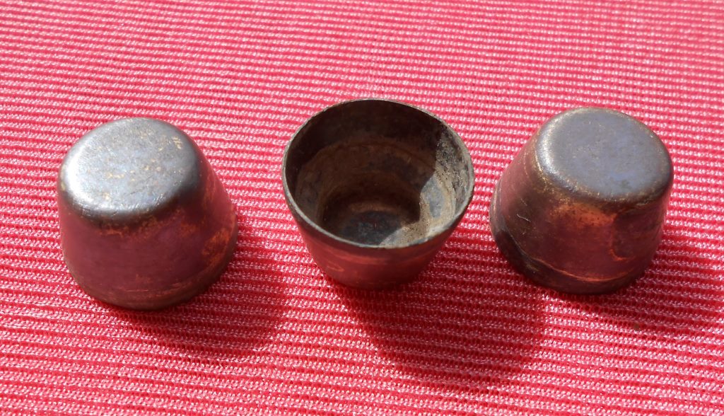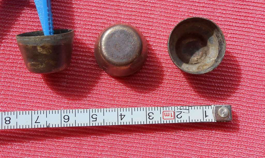 Приветствую. Уважаемые форумчане подскажите - из чего эти колпачки?. Нашел в месте настрела немецких гильз. Имеют свойство - положишь набок сами становятся, короче - не вложишь. Заранее благодарен.