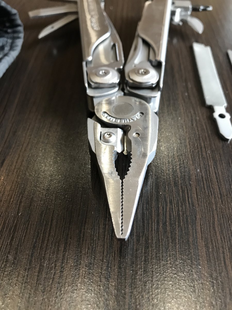 Комплектация на фото: мультитул, пилка по дереву, напильник, пилка bosch по металлу, клипса, чехол нейлоновый.