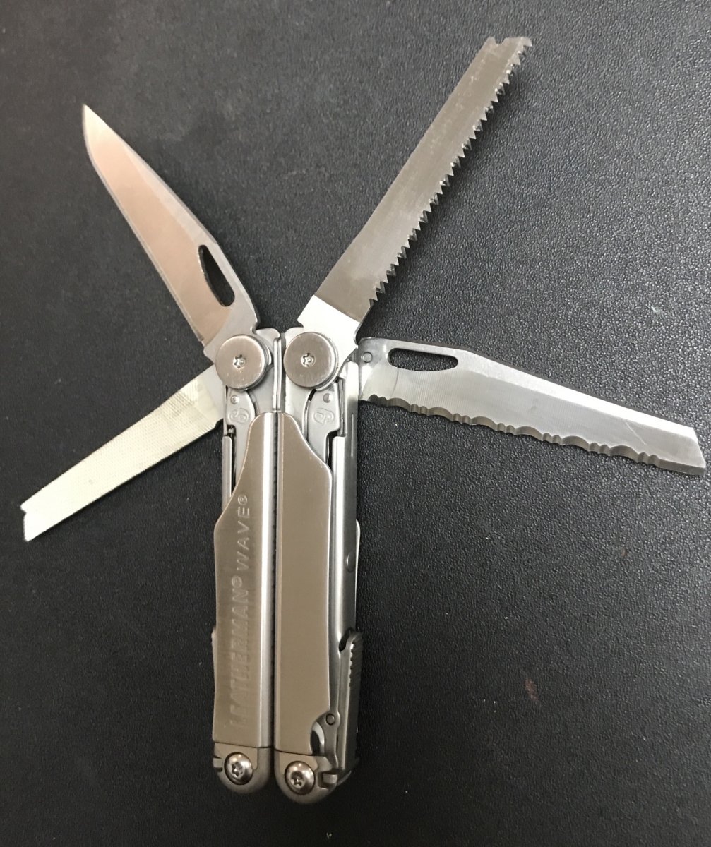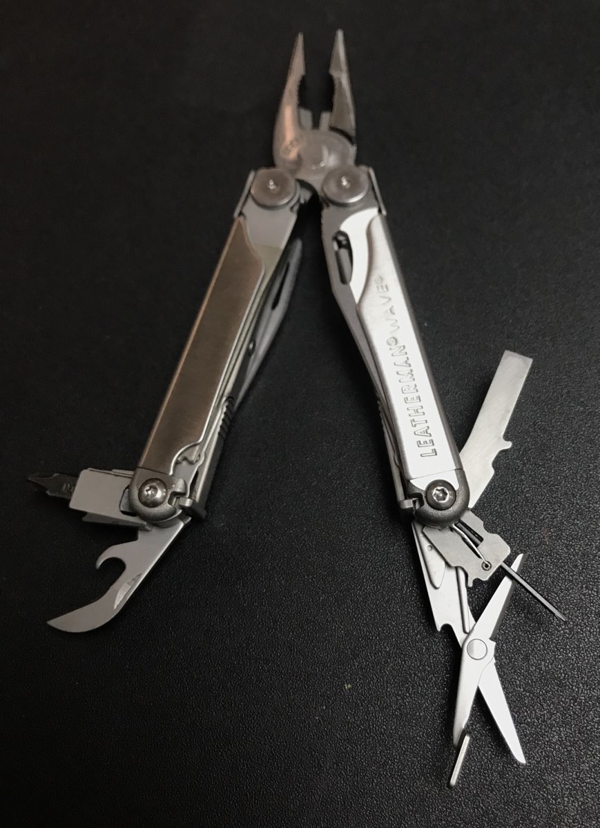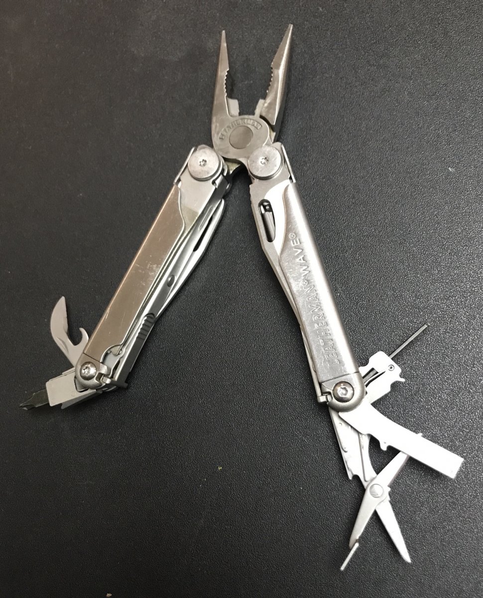 Лот 1 - Leatherman Wave - 1500 грн. Из недостатков: небольшой люфт пассатижей, лезвие плейнового клинка имеет небольшие зазубринки, но заточен, а в целом в работоспособном состоянии (почищен и смазан bluelube).