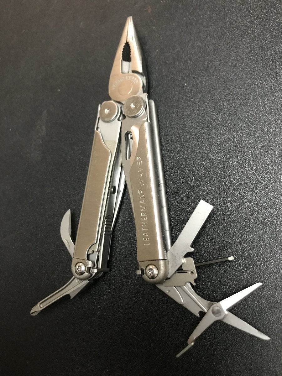 1. Leatherman Wave - состояние хорошее, чистый, как новый, пассатижи без люфтов, сходятся ровно, ножи с заводской заточкой, был заменён большой битодержатель на крестовую отвёртку. - 1700 грн.