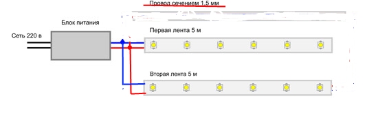 "Соединять последовательно светодиодные ленты длиной более пяти метров недопустимо..." я это имел ввиду в статье. Меньше