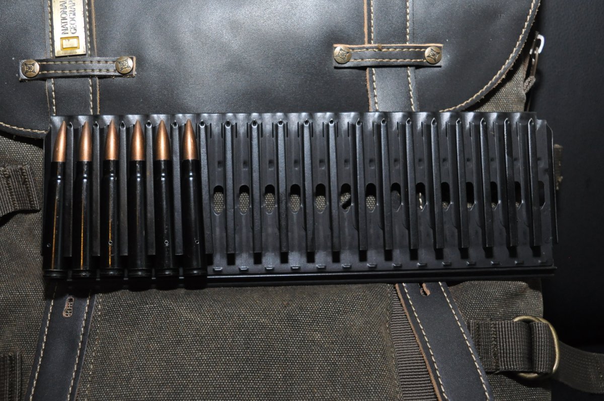 Лента и патроны склад. Патроны редкие 8x59 RR Breda с черной гильзой. Клеймо SMI 944 (44 год, ) http://www.municion.org/8x59/8x59.htm