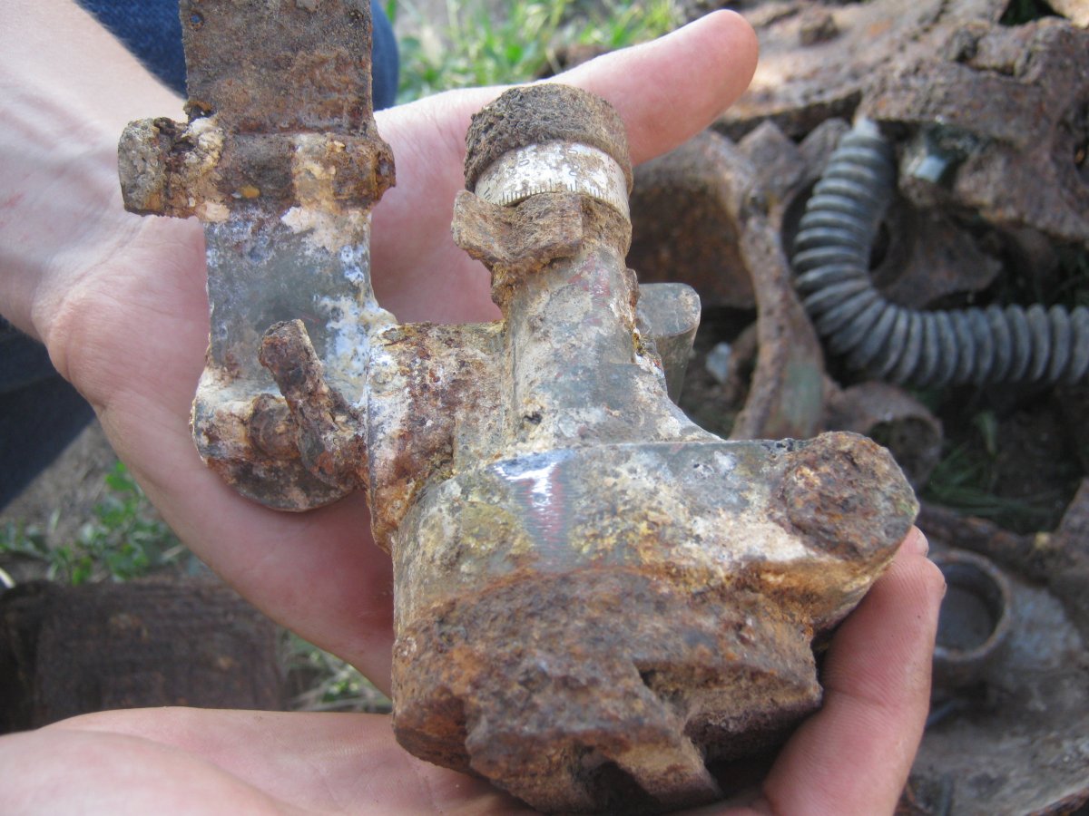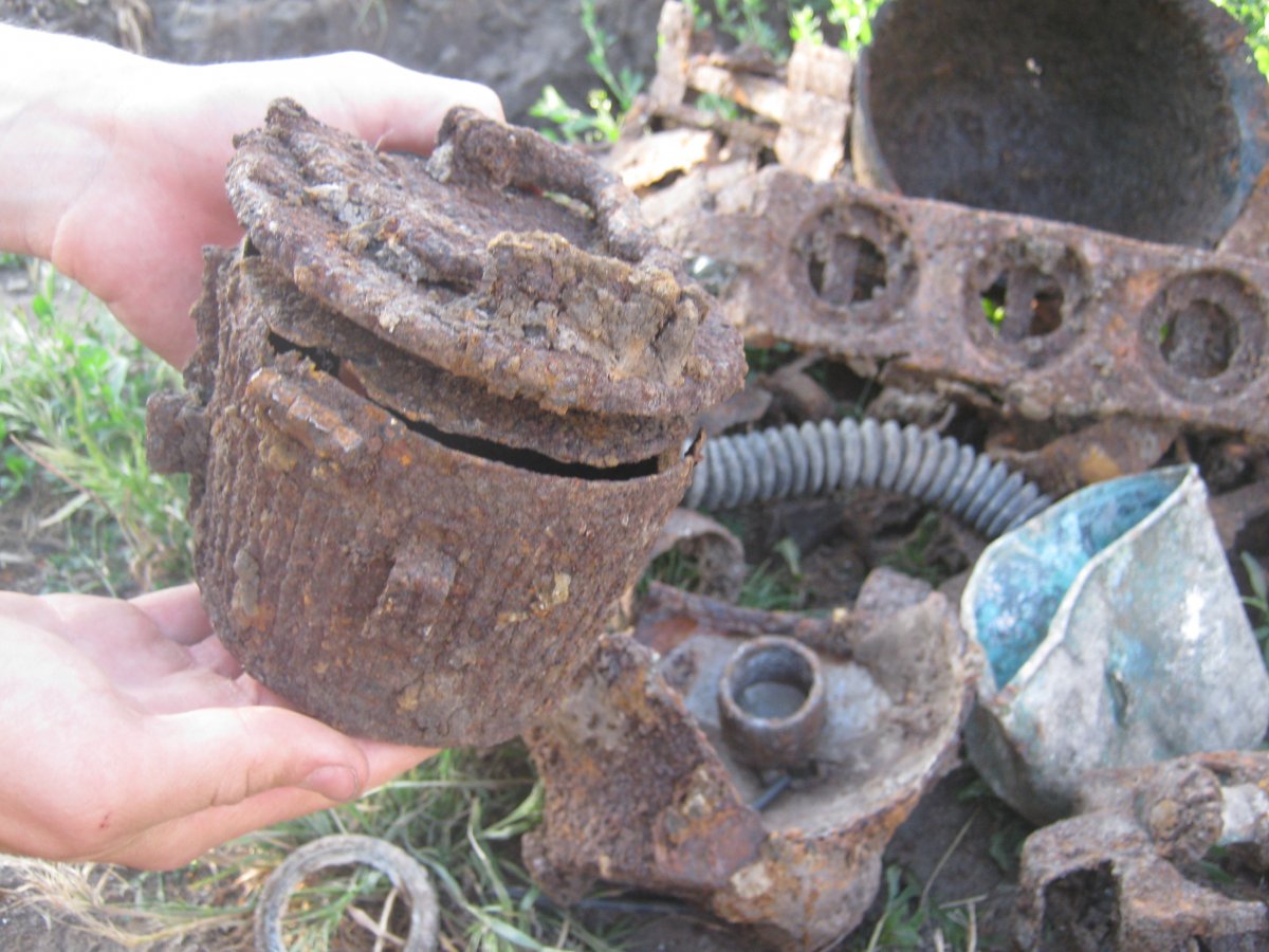Назад ехали через с.Перемога и решили проведать моего друга Коляна, давно не видел его (хоть не спился он там). С Коляном было все в порядке- соседу рыл сливную яму во дворе и накопал вот такой хабарок, прямо возле хаты!