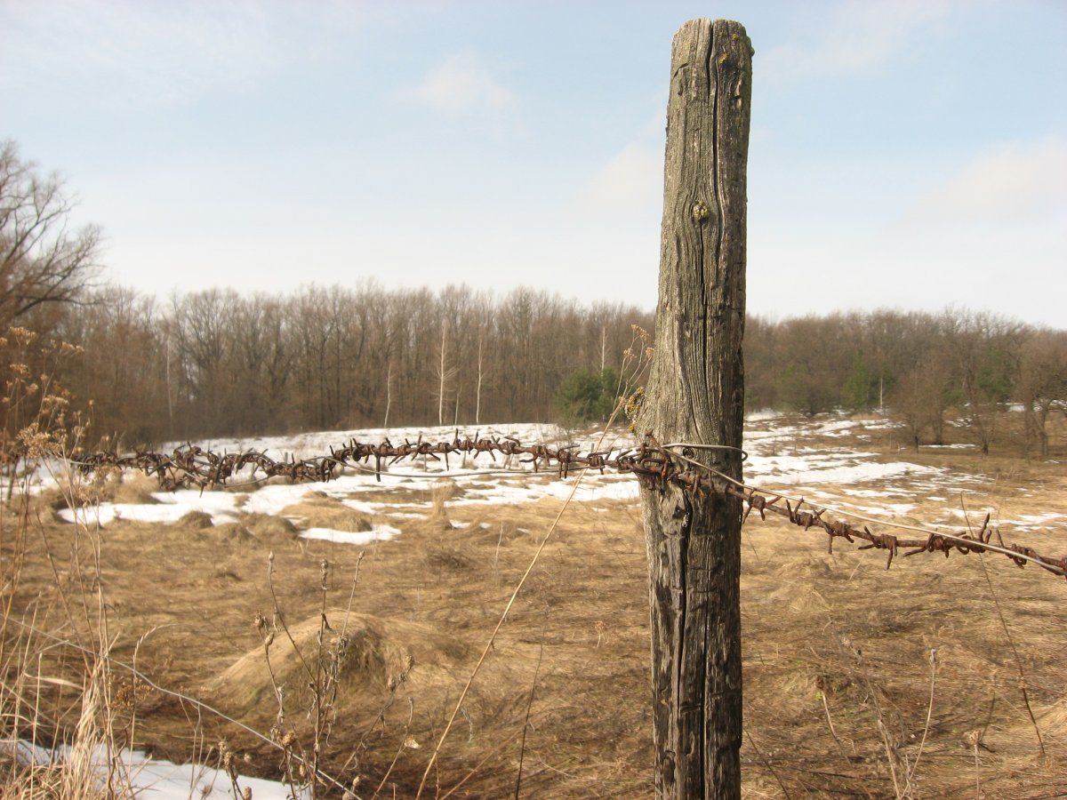 Привет камрады! Сегодня у меня был выходной и я сьездил на коп второй раз в этом году.Решил пробить длинную балку от с.Рубежное до с.Байрак. Запарковал авто в с.Замуловка и пошел пешком через село к балке. Перешел через поле раскисшей пахоты(это был писец!)и я на месте в балке! Расчехлился,прошелся,огляделся- ни позиций, ни окопчиков ни чего.Лазил,лазил с прибором- "борода" полная,одни осколки,цветных сигналов вообще нет. Еще через пахоту ползти назад, а силы уже на подходе! Перешел поле и решил не через село идти к машине, а через край битого,перебитого леса , который находится на высоте над с. Замуловка (быв. Жовтневе).