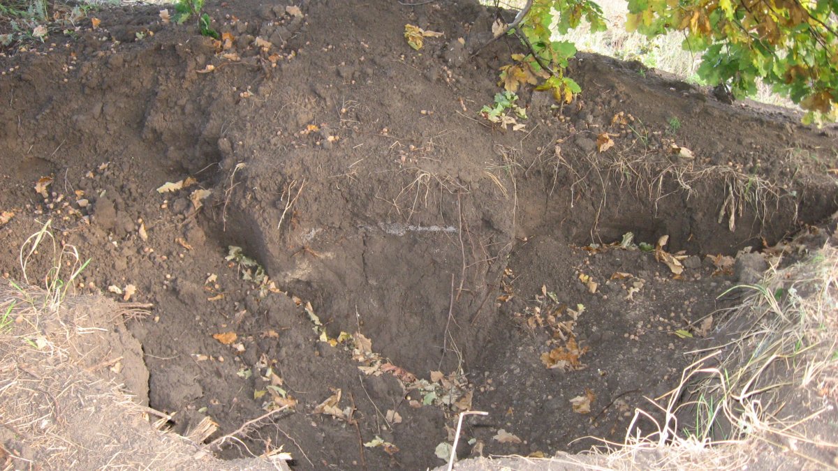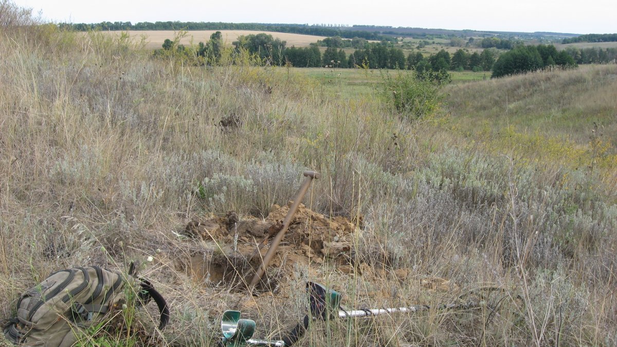 Решили поменять место. Поехали на высоту 199.0, восточнее Шестаково. Там опорник немцев ,между двух полей , кукурузу уже скосили. Добравшись туда,нас постигло уныние от удручающего вида высоты. Не успели! Покопы недельной давности, орудовали наверное глубинником.