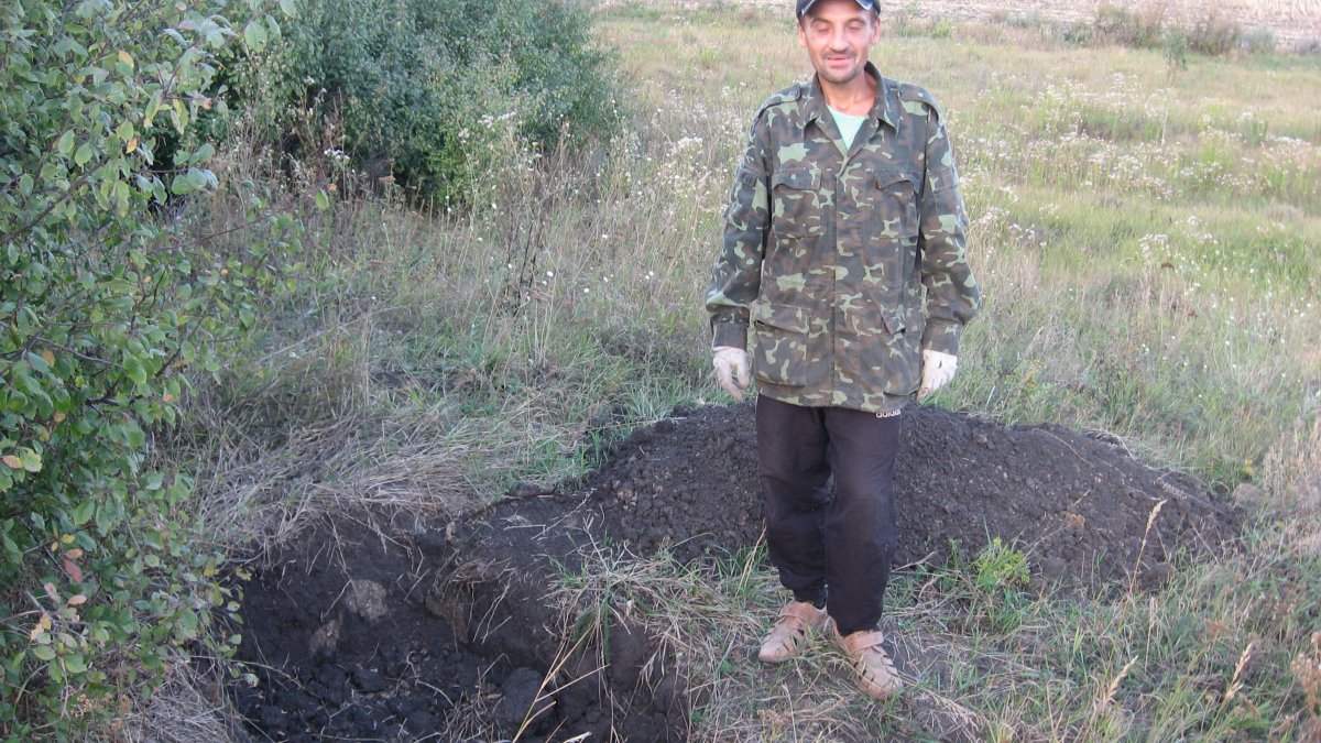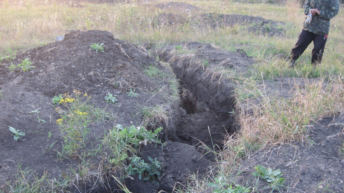 Траншеи не видно, но они есть! Колян орудует по невидимым траншеям добывая себе шмурдяк, так, как хабара в них нет.