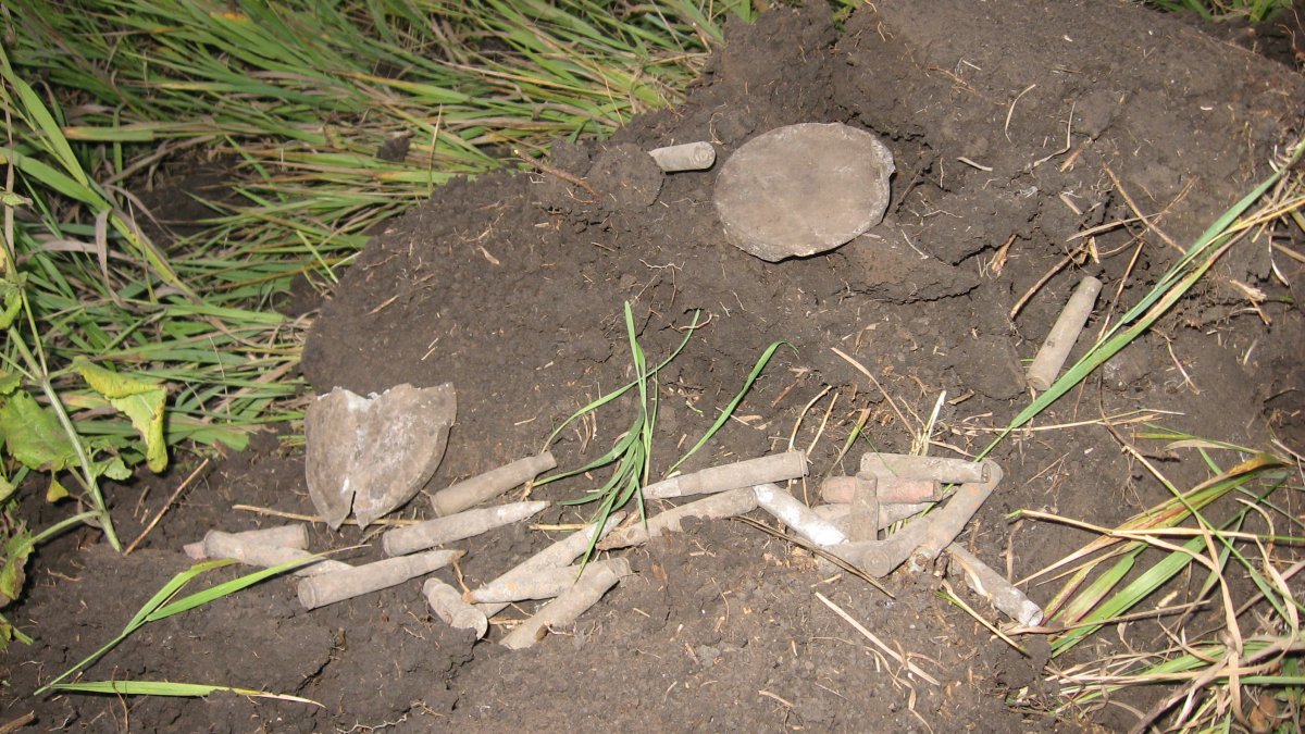 И начал попадаться как-бы неплохой для наших выбитых мест хабар. Даже здесь место было тронуто, но не профессианально.