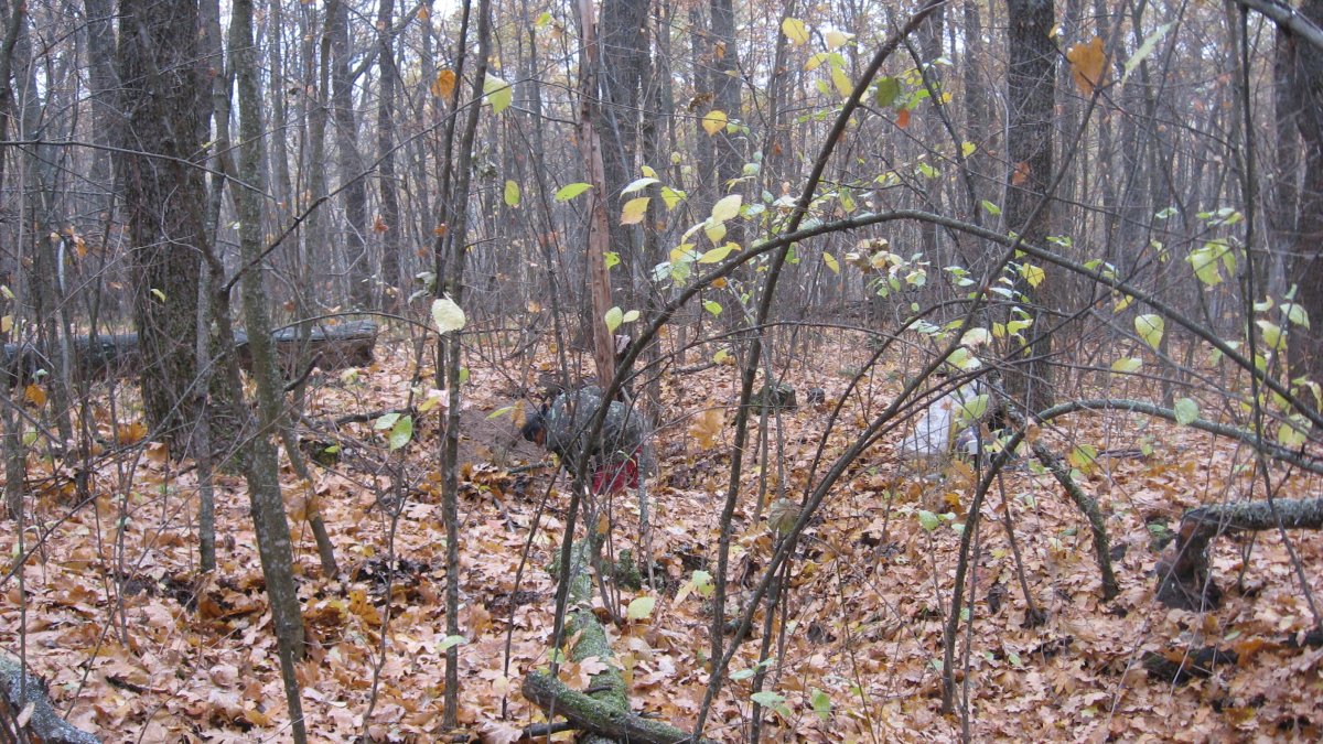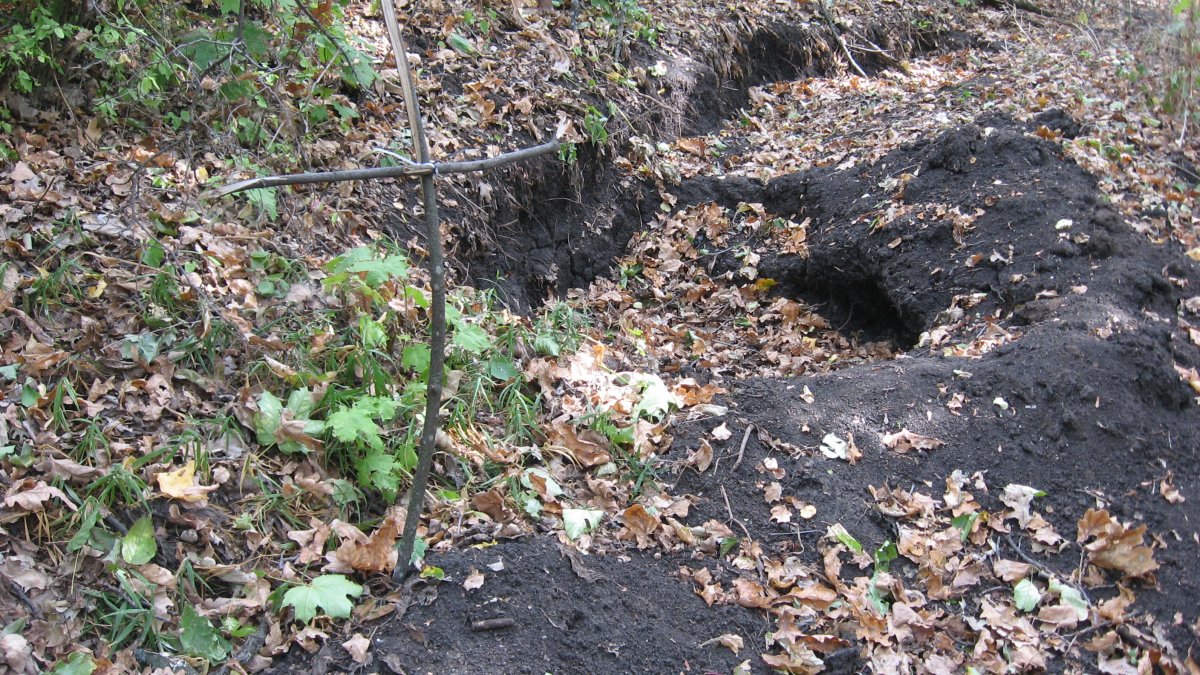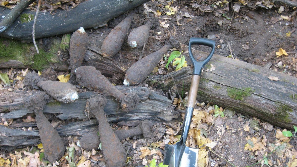 Колян не ездил на коп две недели (подломил где-то ногу), и тут сразу нарвался на ганс-блиндаж засыпанный гнилыми яшиками от 80 мм минометок. Там и просидел целый день, ковыряя свой шмурдяк. Высота очень сильно битая,и я, хотел копать на другой высоте. Но Колян завис в этом блиндаже. Пришлось кружить рядом.
