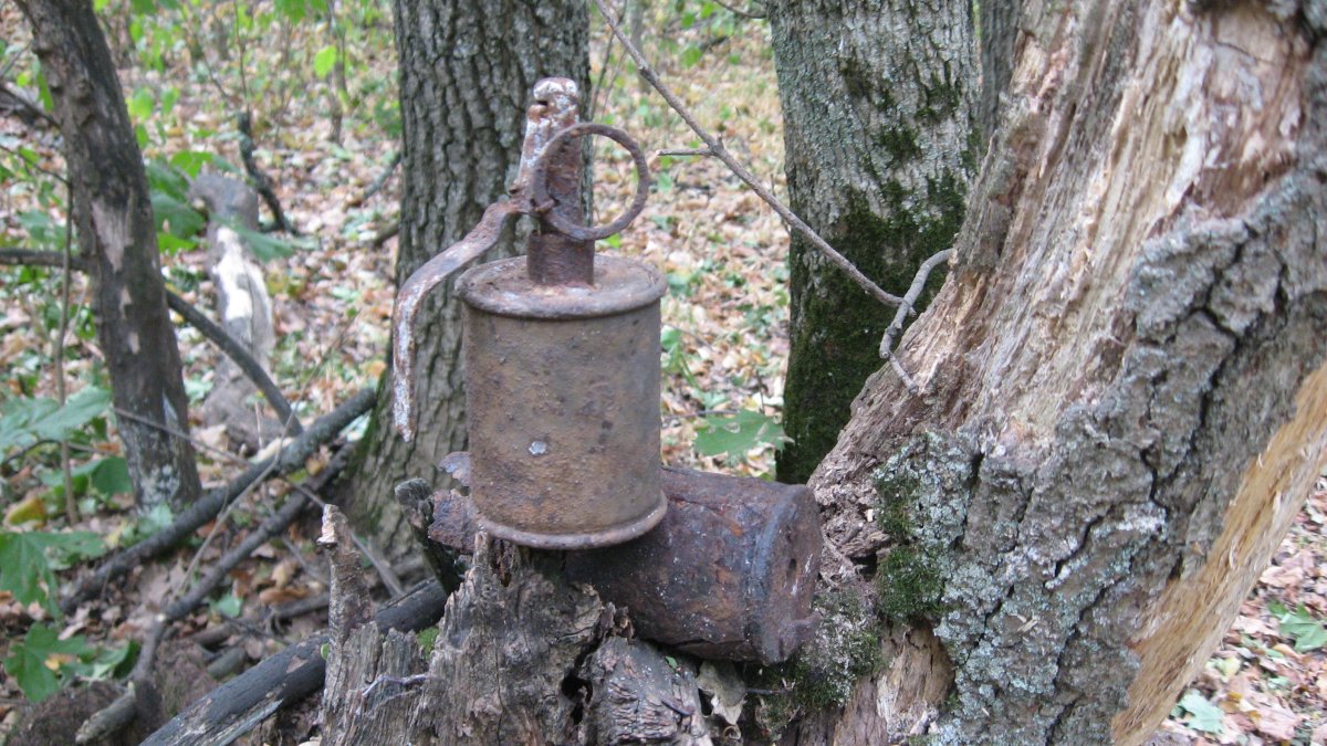 Всем привет! Сегодня получилось "окно" по работе и конечно сразу на коп, при этом забыв с утра даже глянуть прогноз погоды. И вот снова посреди леса, на высоте, изрытой ганс-траншеями и огневыми точками.Высота конечно подвыбита, но еще год назад, я снимал неплохой урожай яиц и калатух. Потихоньку начал пылесосить. Кто-то, копнул ганс-помоечку и выкопав пару сардин, бросил. Я продолжил и выскочило немножко железяк на "светку".