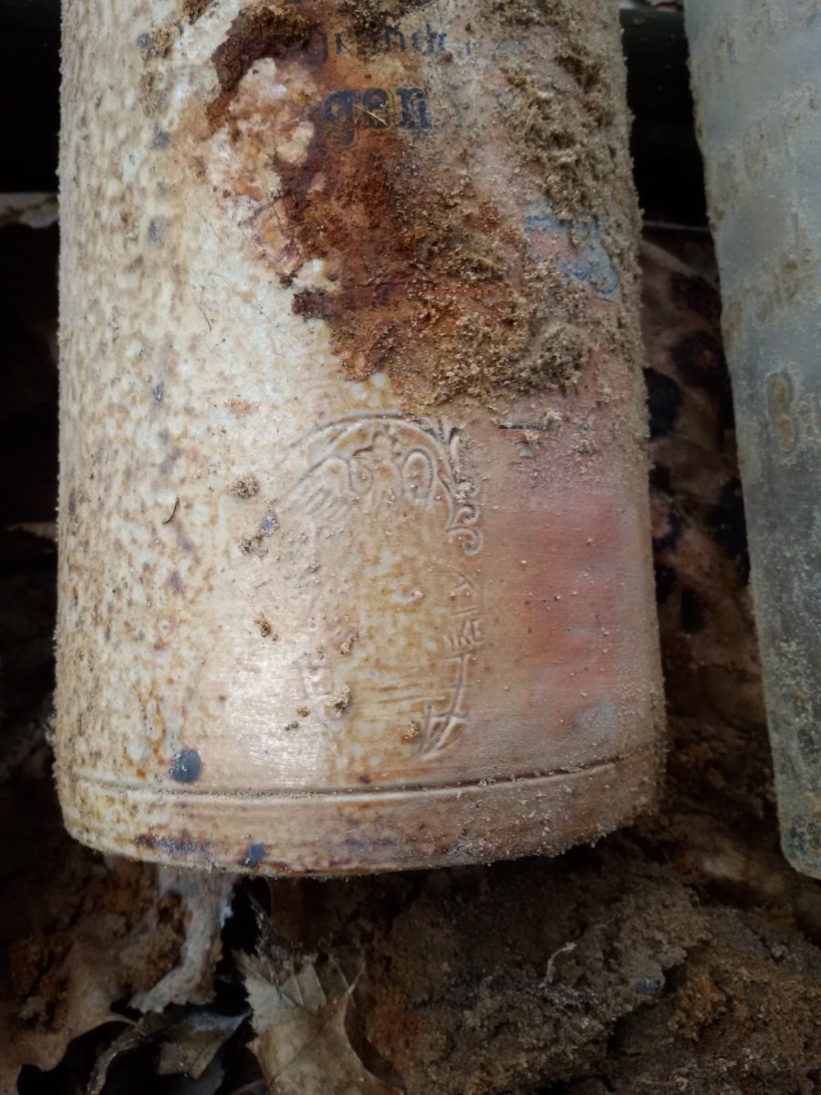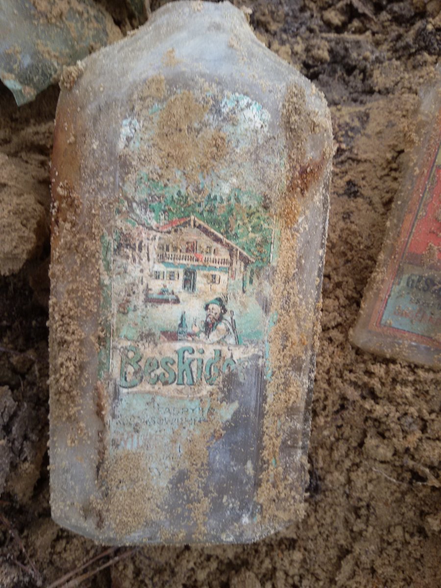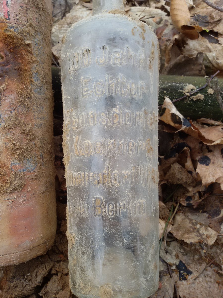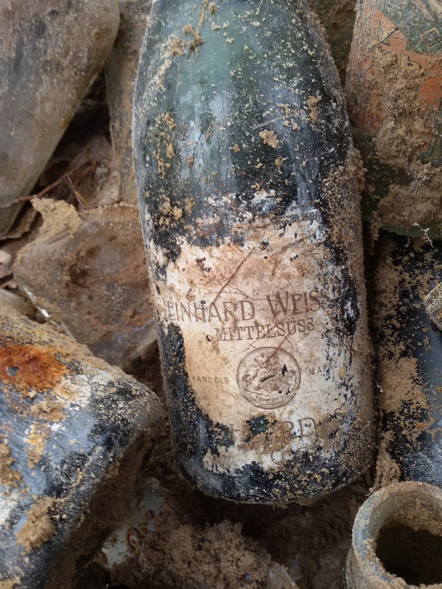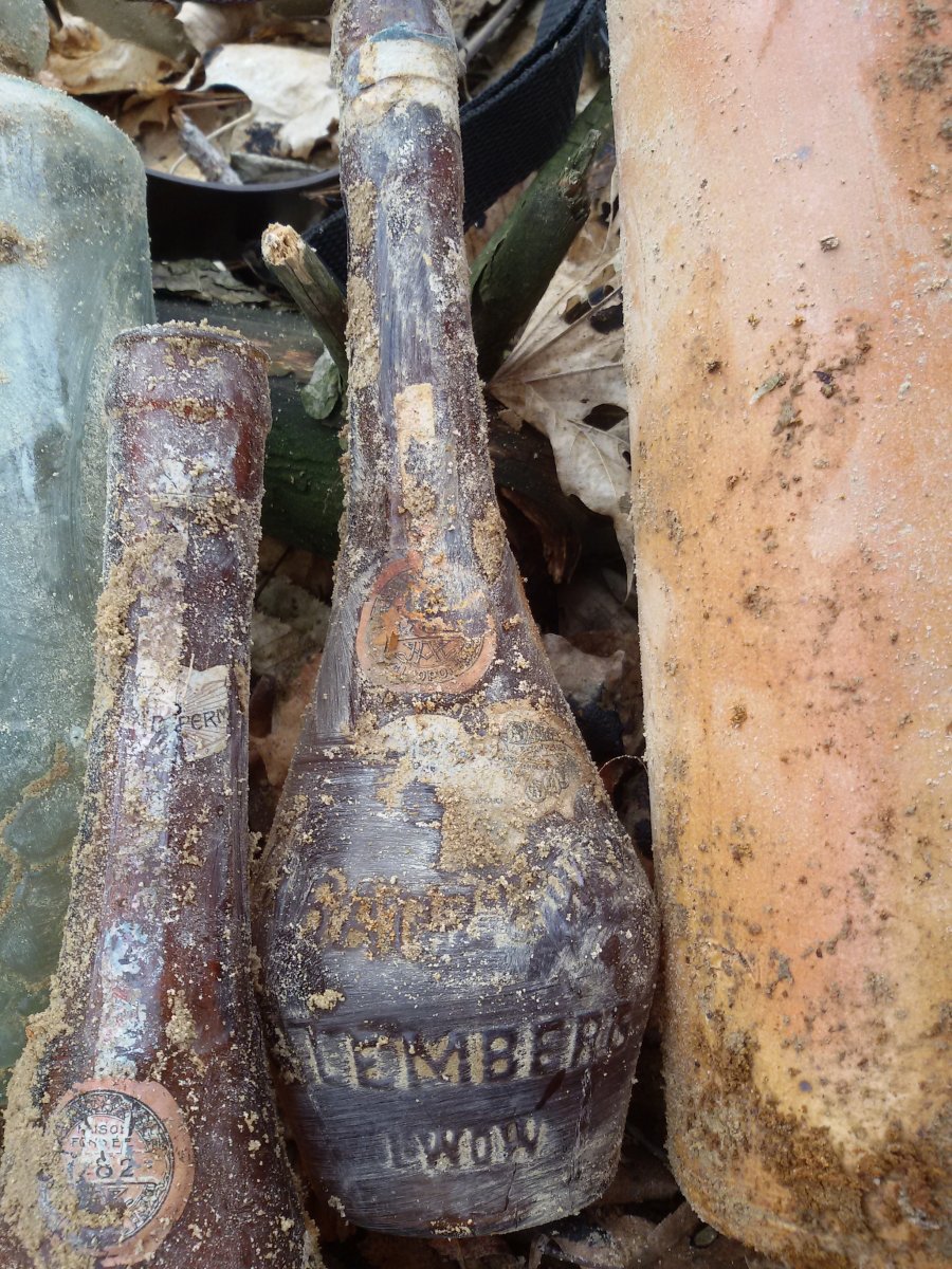 Добрый вечер. Сегодня открыл сезон 2016 и попал на залежи бутылок. Сто лет в земле (песок) а этикетки в нормальном состоянии.
