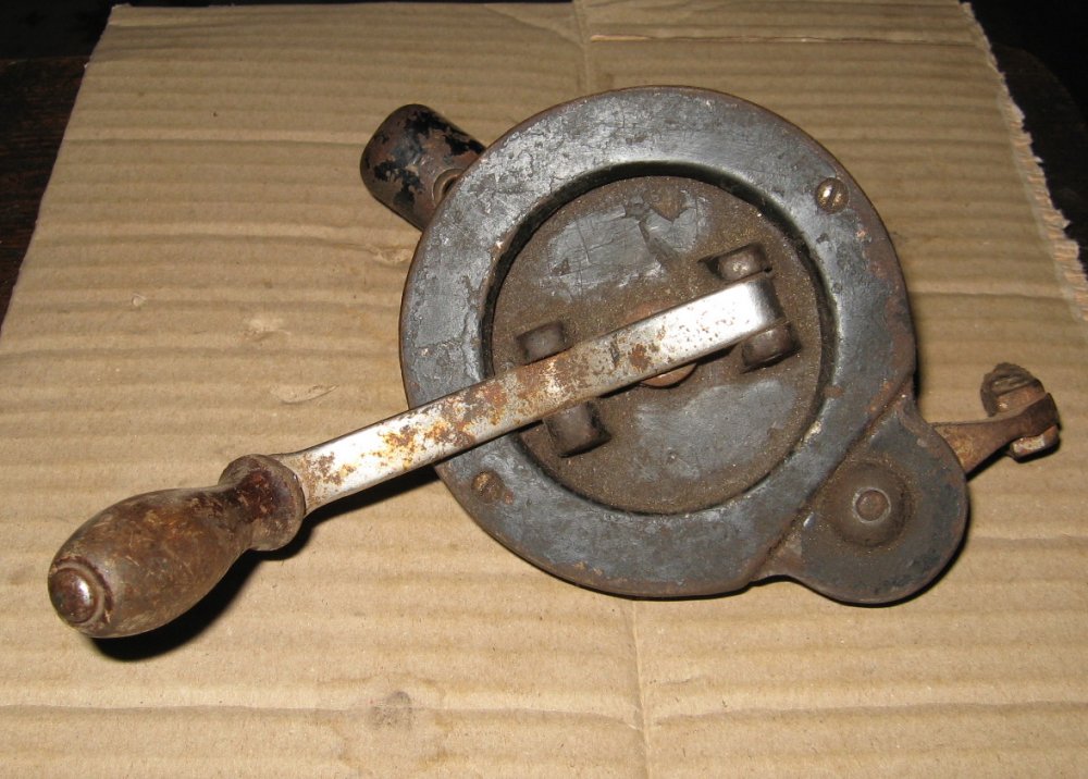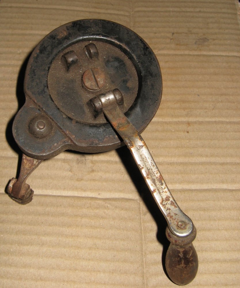 А вот ручка с старой ручной дрели, может быть. Обратите внимание на стрелки: в конце не обломана, а тоже вилкой и где дерево, тоже типа такой же шайбы.