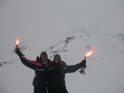 С файрами-обеспечение безопасности туристов. За спиной г. Эльбрус.)