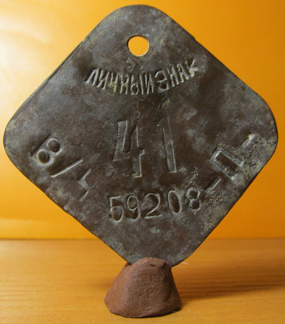 Немного не соглашусь. Личный знак, скорее всего, довоенный, примерно 1939 -1941 года. Из Устава внутренней службы РККА 1937 года (УВС-37) Глава III. Распределение времени 5 Увольнение из расположения части 148. Военнослужащие по получении разрешения на увольнение перед уходом являются к дежурному по подразделению. Дежурный осматривает состояние и пригонку обмундирования увольняемого, записывает его в книгу увольняемых (см. приложение 5) и выдает уволенному до вечерней поверки личный знак (см. приложение 2). При увольнении на более длительный срок выдается за подписью командира роты увольнительная записка. (см. приложение 3). 149. Личные знаки красноармейцев и младшего командного и начальствующего состава срочной службы хранятся в специальном запертом шкафчике под стеклом. Этот шкафчик находится в канцелярии подразделения, ключ хранится у старшины. Судя по тому, что на знаке выбито не открытое наименование части, а условное, выдан после введения приказа НКО № 0127 от 08.07.1937: ... 18. Во изменение ст. 148 Устава Внутренней службы РККА на личном знаке и увольнительной записке проставлять не действительное, а условное наименование... "П" - условная буква, присвоенная данному подразделению (роте, батарее, эскадрону и т.п.), 41-личный номер военнослужащего. К сожалению, пока часть определить не смог, но ясно, что после осени 1939 (до этого периода в обозначении в/ч были 4-х значные цифры), и нумерация могла поменяться несколько раз. По примерной стоимости можете здесь глянуть https://meshok.net/?related=Жетон+бирка+личный+знак+РККА С уважением,