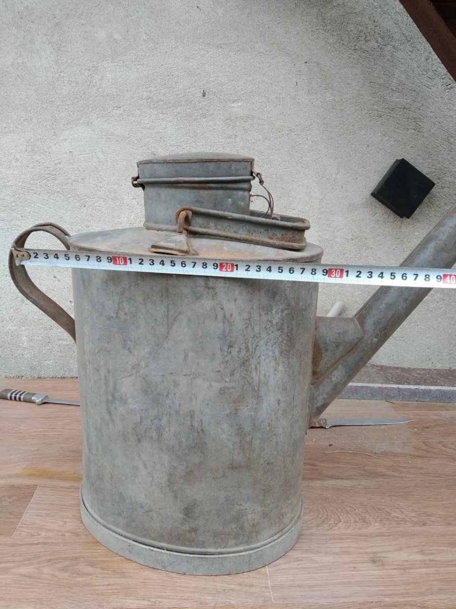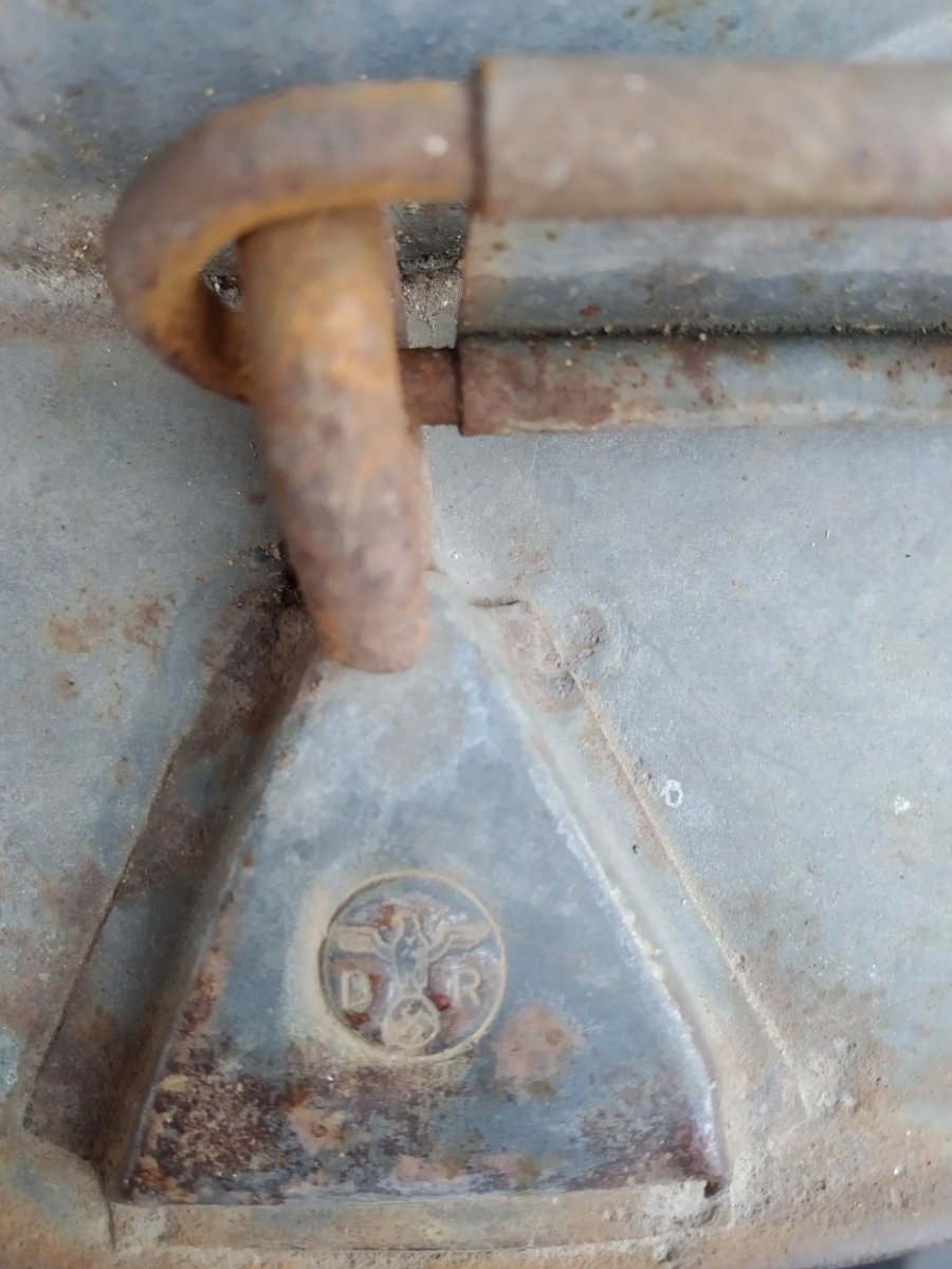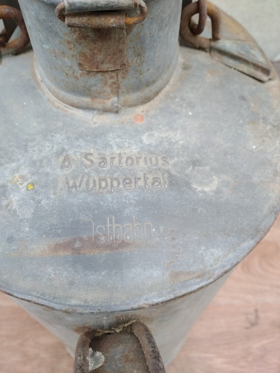 Приветствую. Имеет отношение к железной дороге - надпись "Ostbahn". Канистра-лейка для топлива. Есть надписи на нем- ищите по ним. Такие же чекухи встречаются на ж.д. фонарях. Касаемо оценки - в другой раздел. Из той же оперы: