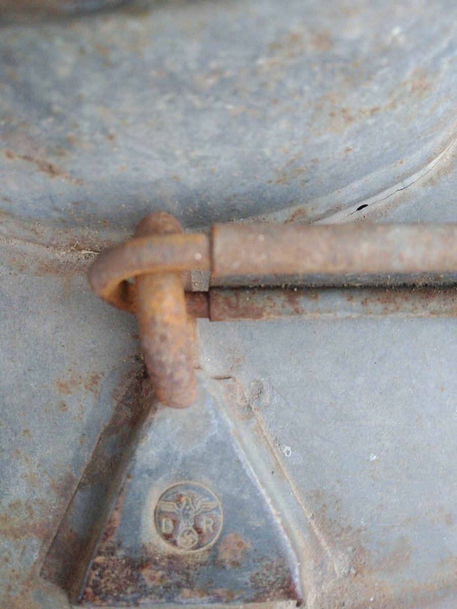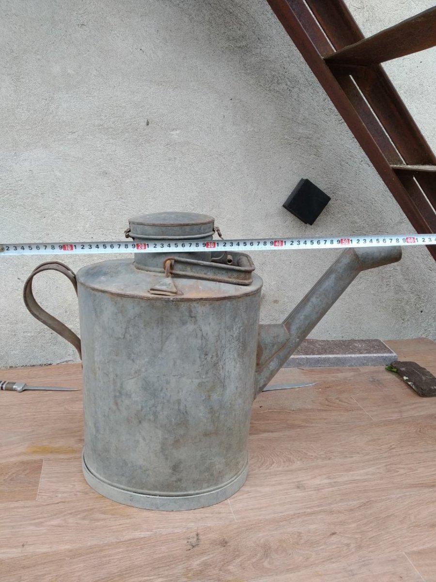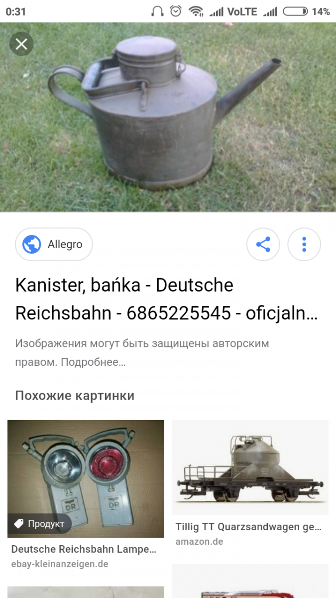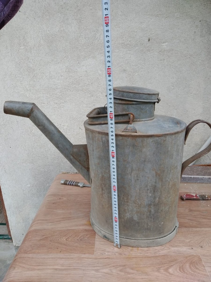 Приветствую. Имеет отношение к железной дороге - надпись "Ostbahn". Канистра-лейка для топлива. Есть надписи на нем- ищите по ним. Такие же чекухи встречаются на ж.д. фонарях. Касаемо оценки - в другой раздел. Из той же оперы: