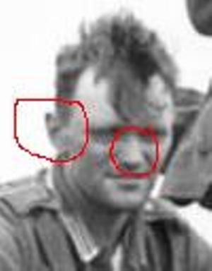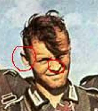 Разрез глаз , подбородок те же + знаки различия , портупея , бинокль ...