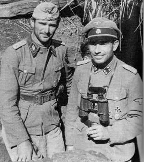 Фотография номер 3: это капитан (Hauptmann) Магольд (Magold) - командир 1-ой батарей дивизиона самоходных орудий "ГД" (Chef 1./Sturm-Gesch.-Abt. GD). Фотография номер 5: Ostuf. Вернер Вольф, адъютант Пайпера