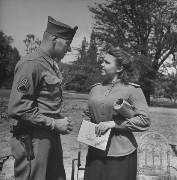 Всюду Жизнь берёт свое. На фото 1 - Первая мировая. Шедевр окопного скульптора. Фото 2 . Молодая американка лишний раз убеждает зрителя, что Женщиной нужно быть всегда и прежде всего. Даже на конвейерной сборке авиабомб. Фото 3. Где-то на Эльбе...