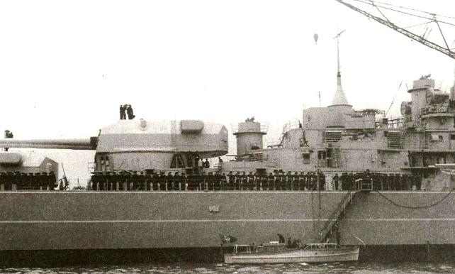 Нет, на втором фото его близнец, Бисмарк. см. http://www.kbismarck.com/photo061.html 9 декабря 1940г. Бисмарк в устье Эльбы. Перевод на фото такой " Линкору, до сих пор не хватает вперед 7-метрового дальномера, который не был установлен на борту до марта 1941 года." http://www.kbismarck.com/photo002.html описание на фото: Линкор Бисмарка в Grimstadfjord, Норвегия, как видно из тяжёлого крейсера Prinz Eugen утром 21 мая 1941 года. По этим 2-ум фоткам , где подписано что это "Бисмарк" (да и вы сами видите "Балтийский камуфляж" в Норвегии, на нем стоит) четко вижу этот радар. У вас же самая четкая фотка это №4 я так думаю что это в период ходовых испытаний (у его еще все впереди).