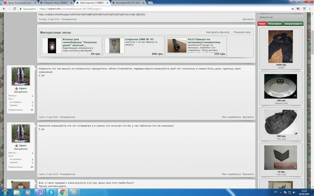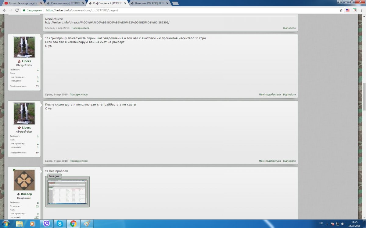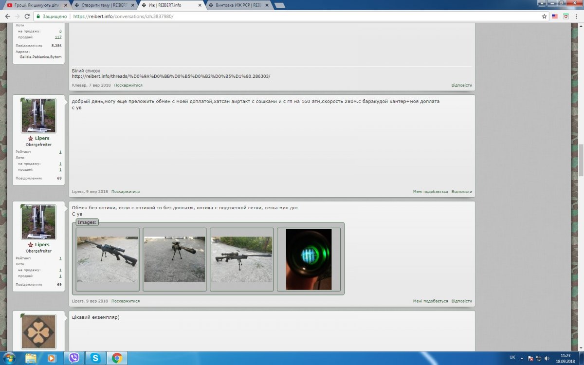 Вітаю. Тема аукціону https://reibert.info/lots/vintovka-izh-rsr.258384/ Покупець дуже хотів придбати дану гвинтівку, пропонував різний обмін, звонив, припрошував... Після чого запропонував цікавий варіант, поставив бліц а на наступний день заявив що обміну не буде. Так то воно пофіг але на форумі зняло 112 грн. Попросив оплатити на що людина згодилась і вже 8 днів не виходить на звязок. Не варто мати справи з такими людьми і взагалі рейберт не віоліті і тут брехуном не місце.. Успіхів.