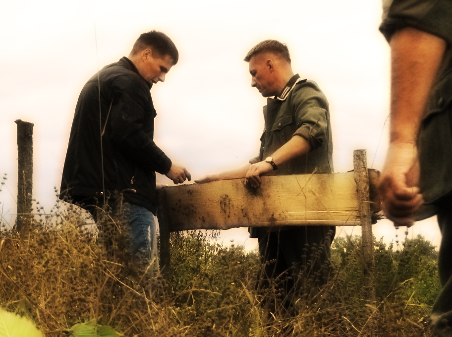Позаботились и о моральном духе солдат Вермахта (и не дай бог РККА). Дабы не демарализовать их стойкость и силу духа пришлось еще до подхода основных сил обеих противоборствующих сторон весь удар принять на себя и удалить с поля боя предмет женской амуниции,видимо потеряный когда то местной дояркой с близлежащей фермы. P.S. Боец на фото для масштаба.